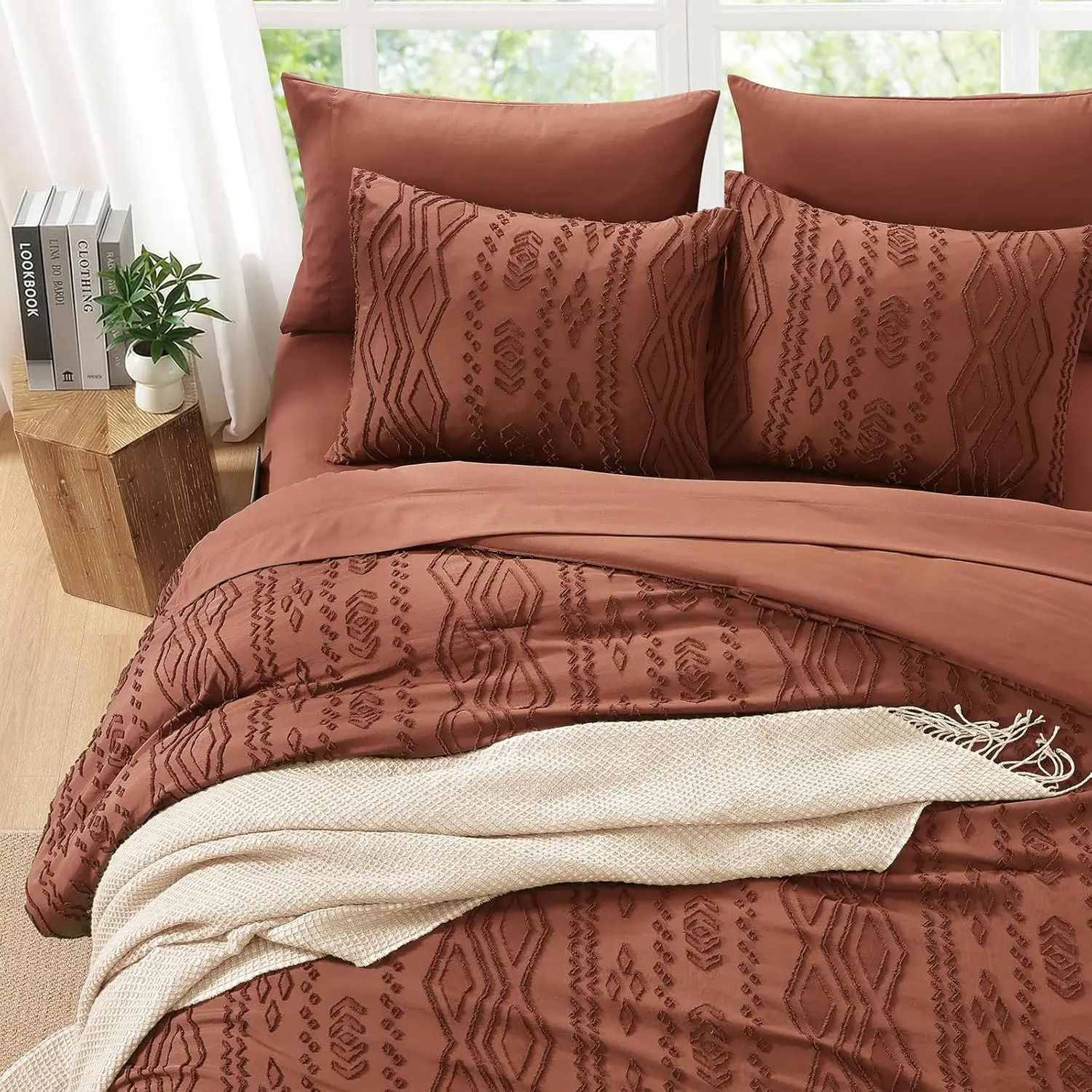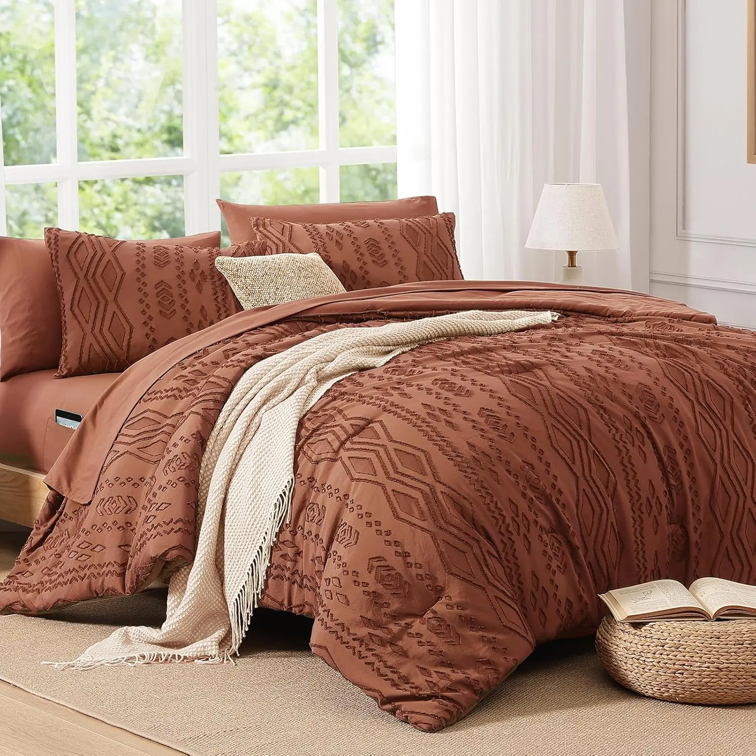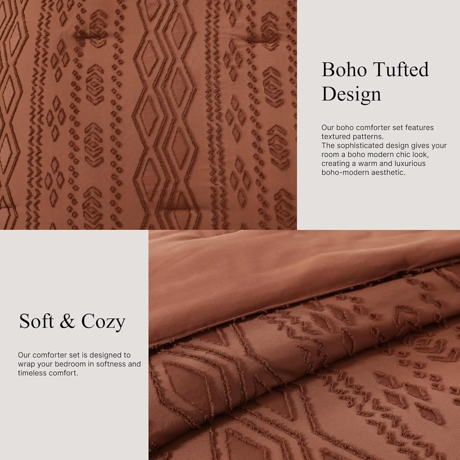 Boho Tufted Design: Our boho comforter set features textured patterns.The sophisticated design gives your room a boho modern chic look, creating a warm and luxurious boho-modern aesthetic.