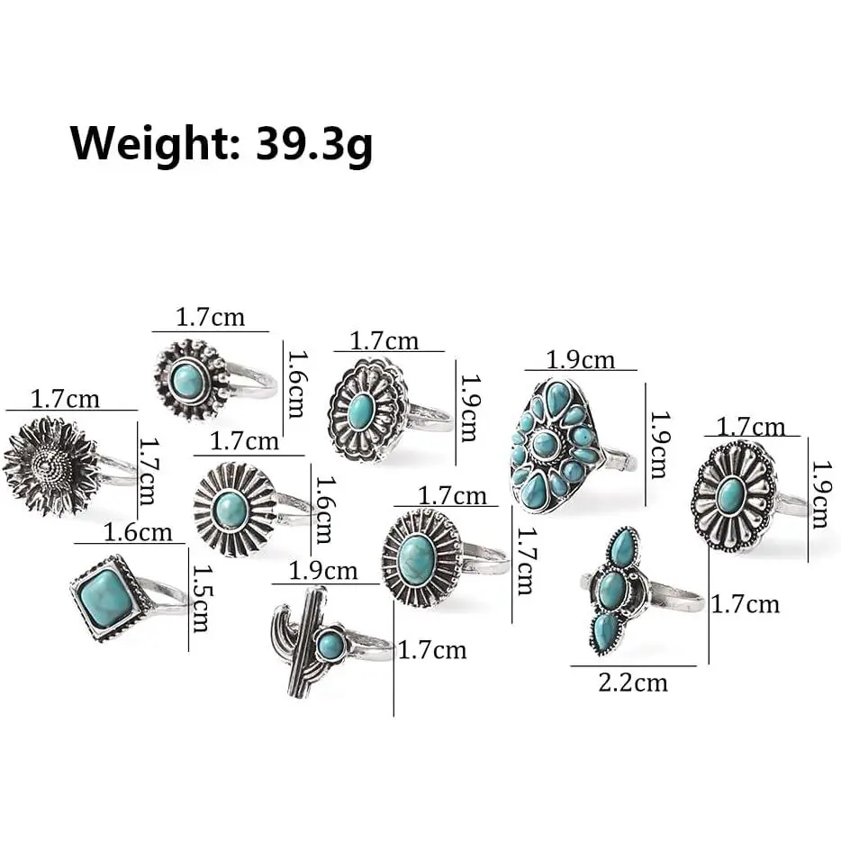Unique Design:There are many types of joint stacked rings for you to choose from, each ring is very fashionable and charming, there are many geometric shapes of rings, there are cactus turquoise rings, spiral ring, evil eye ring, there are crystal dome ring and other various aesthetic rings.You can choose how to accessorize these ring sets based on your mood and outfit.Wearing this thick statement ring is sure to attract a lot of attention and make you the center of attention in the crowd.High Quality Rings:These silver joint stacking rings are made of high quality alloy, not easy to cause your allergies, sensitive skin is also very friendly, not easy to rust and fade, very comfortable to wear.Size:These Bohemian knuckle stacked rings range in diameter from 0.63 "to 0.71".Many of these rings have adjustable openings to fit everyone's finger size.The total weight of the rings is about 0.16lb (73.4g), so even if you wear them all on your finger they won't be a burden on your finger.Gift:These western joint statement rings are suitable for women of all ages.You can give it as a gift to your mom, daughter, sister, wife, best friend on Mother's Day, Christmas, Halloween, Valentine's Day, birthday, party to show your love for them.After sales:If you have any question about this product, or if there is any quality problem after you buy it, please feel free to tell us at any time, we will reply to you as soon as possible.