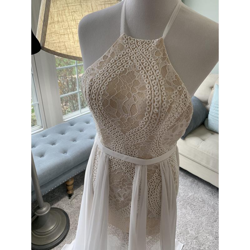 This beautiful sexy Boho Wedding Dress is every bride's dream. Features beautiful lace patterns with an inner layer of Satin Lining to give it a beautiful contrast. You can choose absolutely any color of the satin later from our color chart and we can tailor it in any size! Perfect for Beach Wedding or Destination Weddings. Sketch is by Brides & Tailor's Design Team.
