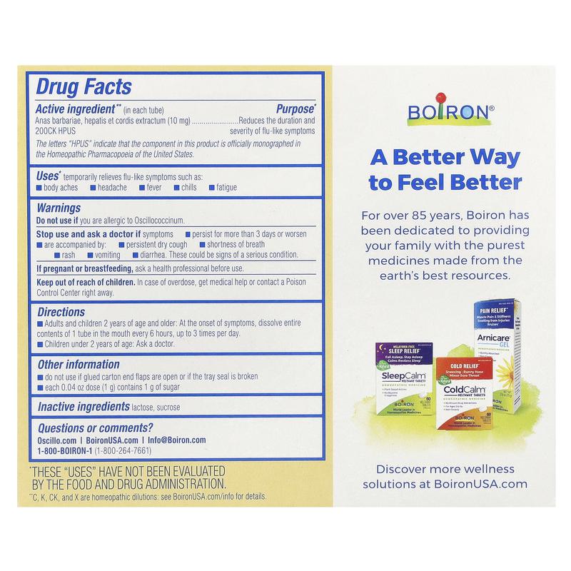 Boiron Oscillococcinum, Single Dose Tubes, Flu-Like Symptoms, Ages 2+, 30 Meltaway Pellets , 0.04 oz (1 g) Each