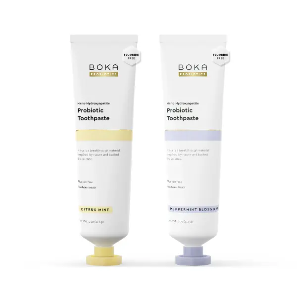 Boka Probiotic Nano Hydroxyapatite Toothpaste 2-Pack – Fluoride-Free, Citrus Mint & Peppermint Blossom, 4oz Each