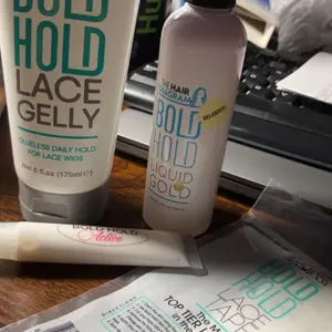 **Bold Hold Active Glider Lace Wig Glue .5oz, Gelly 6oz, Liquid Gold 4oz & 3-in-1 Spatula Bundle