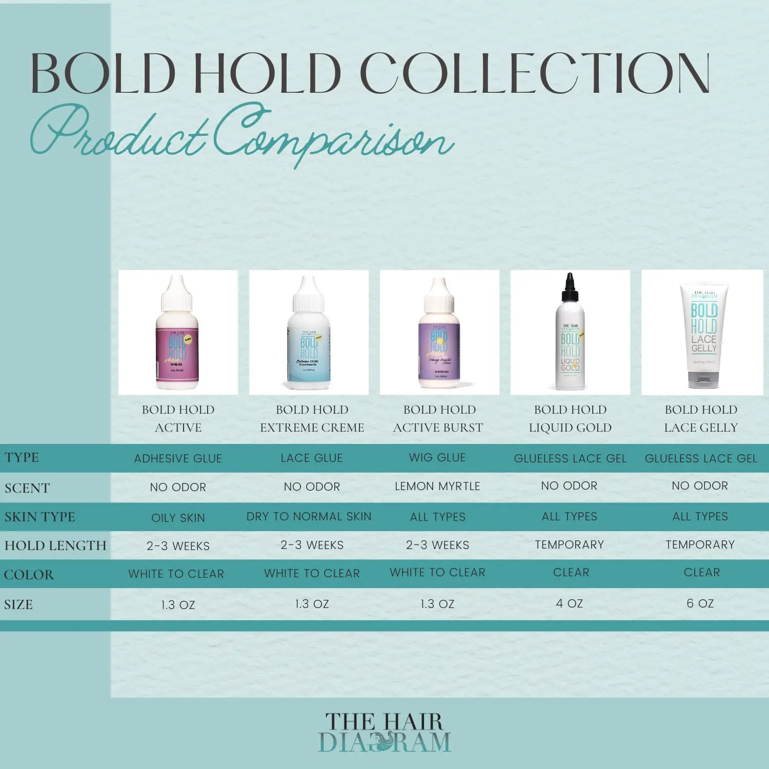 Bold Hold Active is a premium, water-based, non-toxic lace adhesive designed for 2–3 weeks of strong, secure hold. Ideal for clients with oily skin or active lifestyles, this adhesive is humidity-resistant, waterproof under certain conditions, odorless, and latex-free.