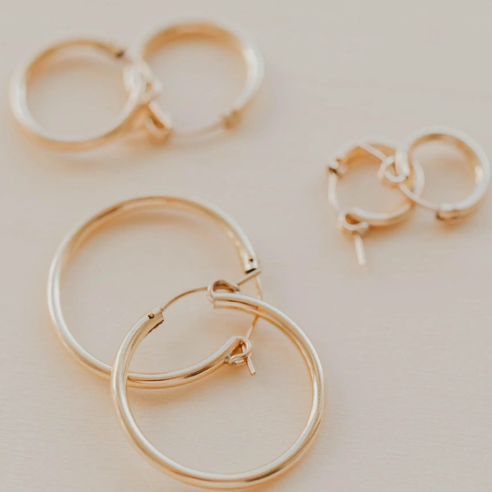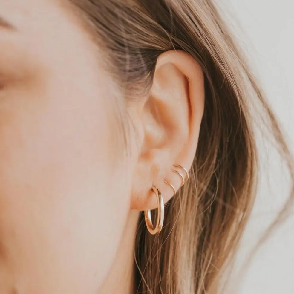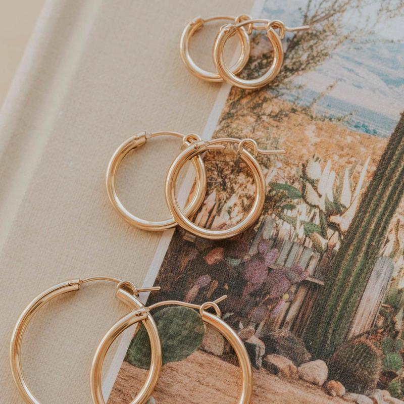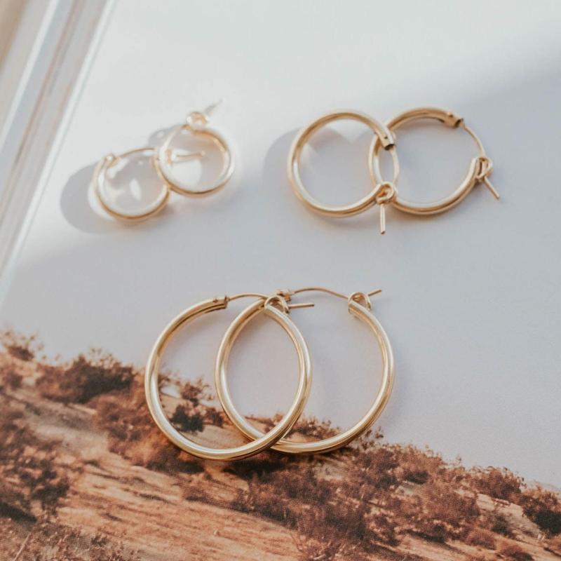 I got the middle size Bold Hoops to wear in my 1st hole as an everyday pair. I swap them in between the Tiny horseshoes. They are super comfortable light weight! Super cute