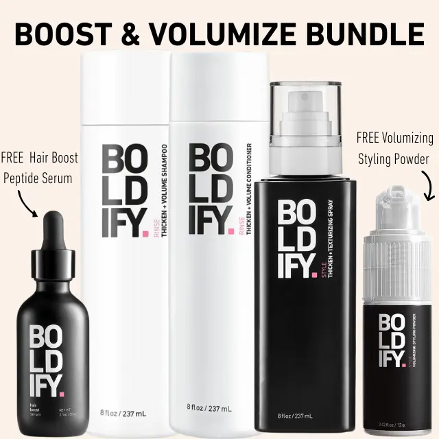 Cleanse, Boost & Volumize Bundle with Peptide Hair Boost Serum, Thickening and Volumizing Shampoo and Conditioner, Texture Spray and Volumizing Powder, Ideal for Styling Thin or Thinning Hair Growth Hair Serum Bergamot Fuller Looking