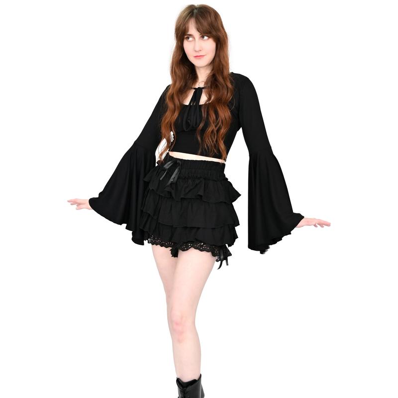 The fit and material are perfect. The bell sleeves are just the right length to be dramatic but still leaves your hands free and functional. Foxblood never disappoints!