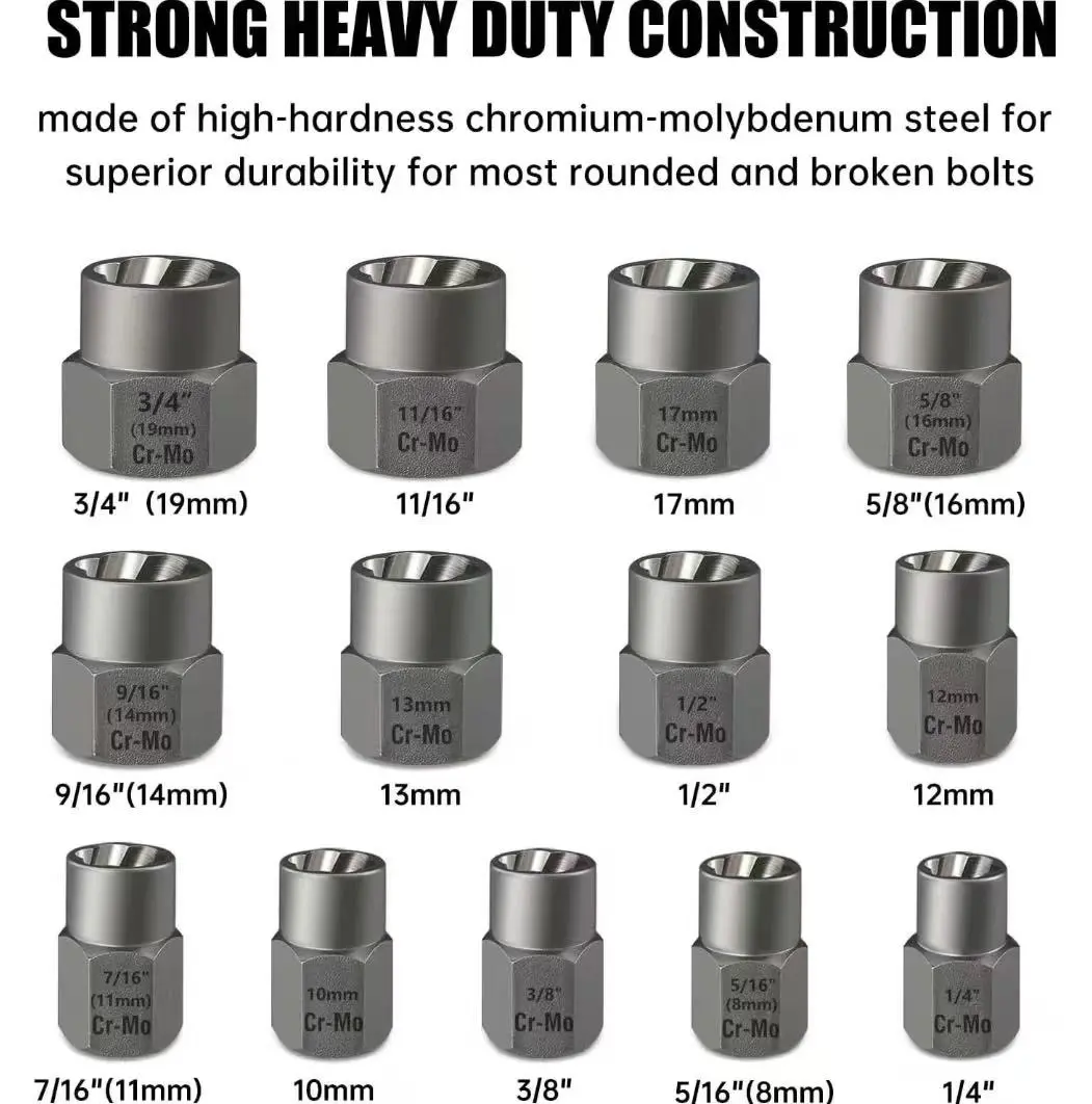 Bolt Extractor Kit 13 Pcs Stripped Bolt Extractor Set Impact Bolt Nut Easy Out Remove Rusted Frozen for Drill Use