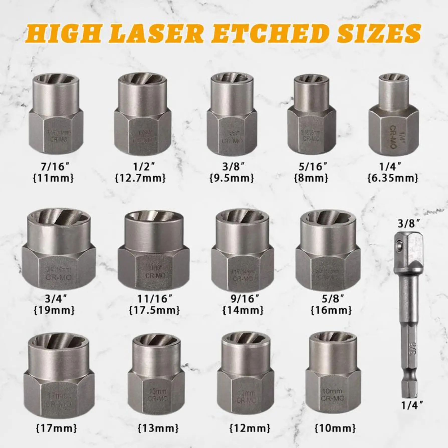 This Cr-Mo Steel 3/8" Drive Impact Tool Kit is perfect for damaged, frozen studs, rusted, and rounded-off bolts, nuts, and screws. The universal socket set ensures versatility. 🛠️