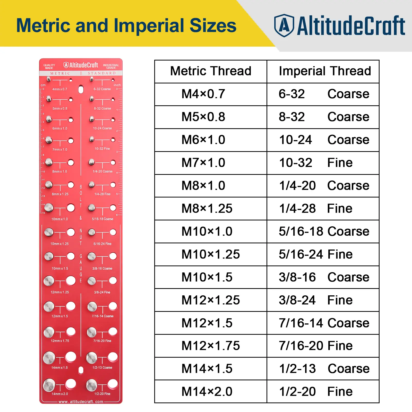 Unlock unparalleled precision with the AltitudeCraft Ultimate Thread Gauge, your essential tool for seamless thread identification. Here's why it stands out: