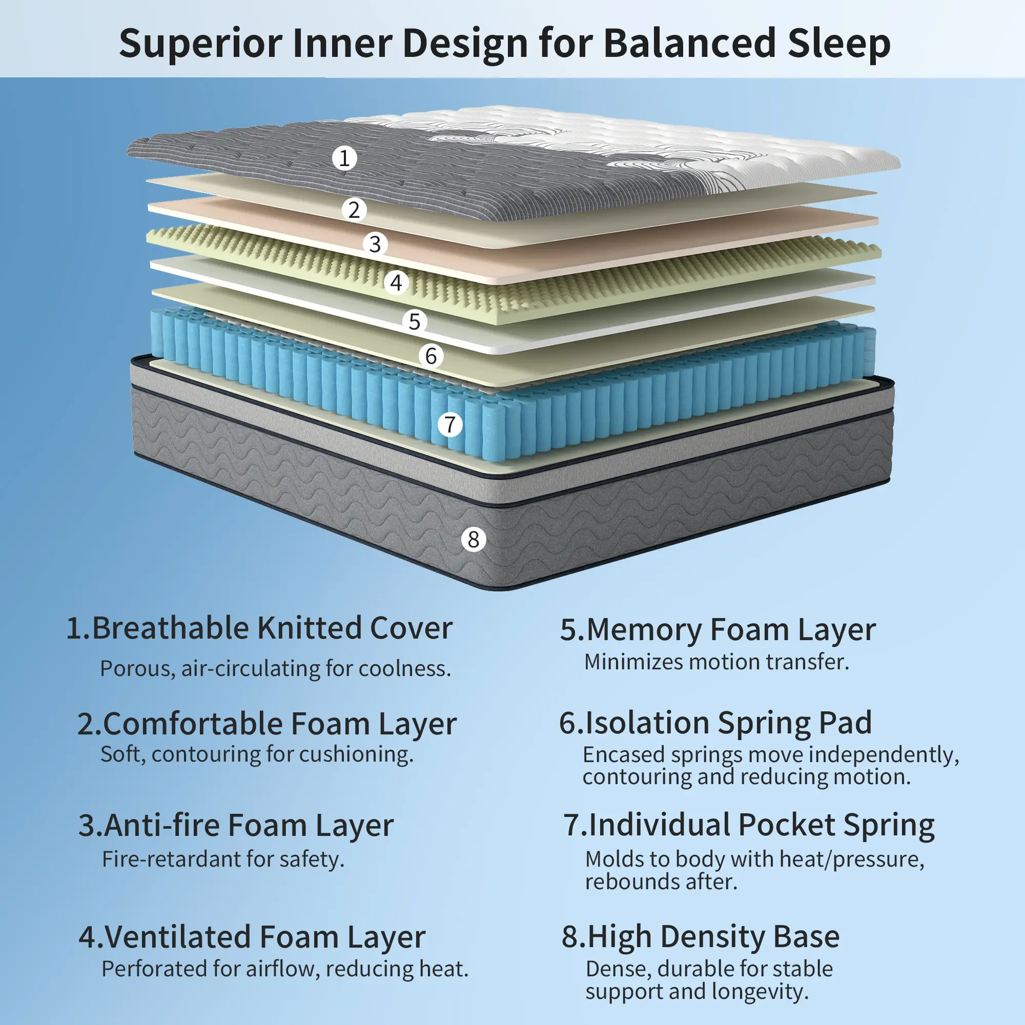 ·Material: High Density Foam/Polyester knitted fabric/Non-woven fabric/Pocket spring