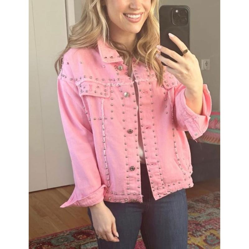 Cute Stud Jean Jacket 🩷 #jeanjacket #denimjacket #tiktokshopfinds #tiktokshopblackfriday #tiktokshopcybermonday #spotlightfinds #blackfridaydeals #treasurefinds #outfitinspo #trendyoutfit