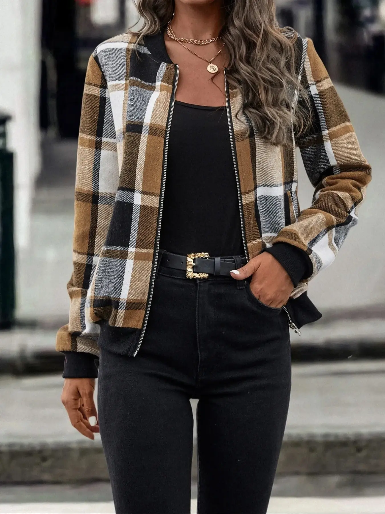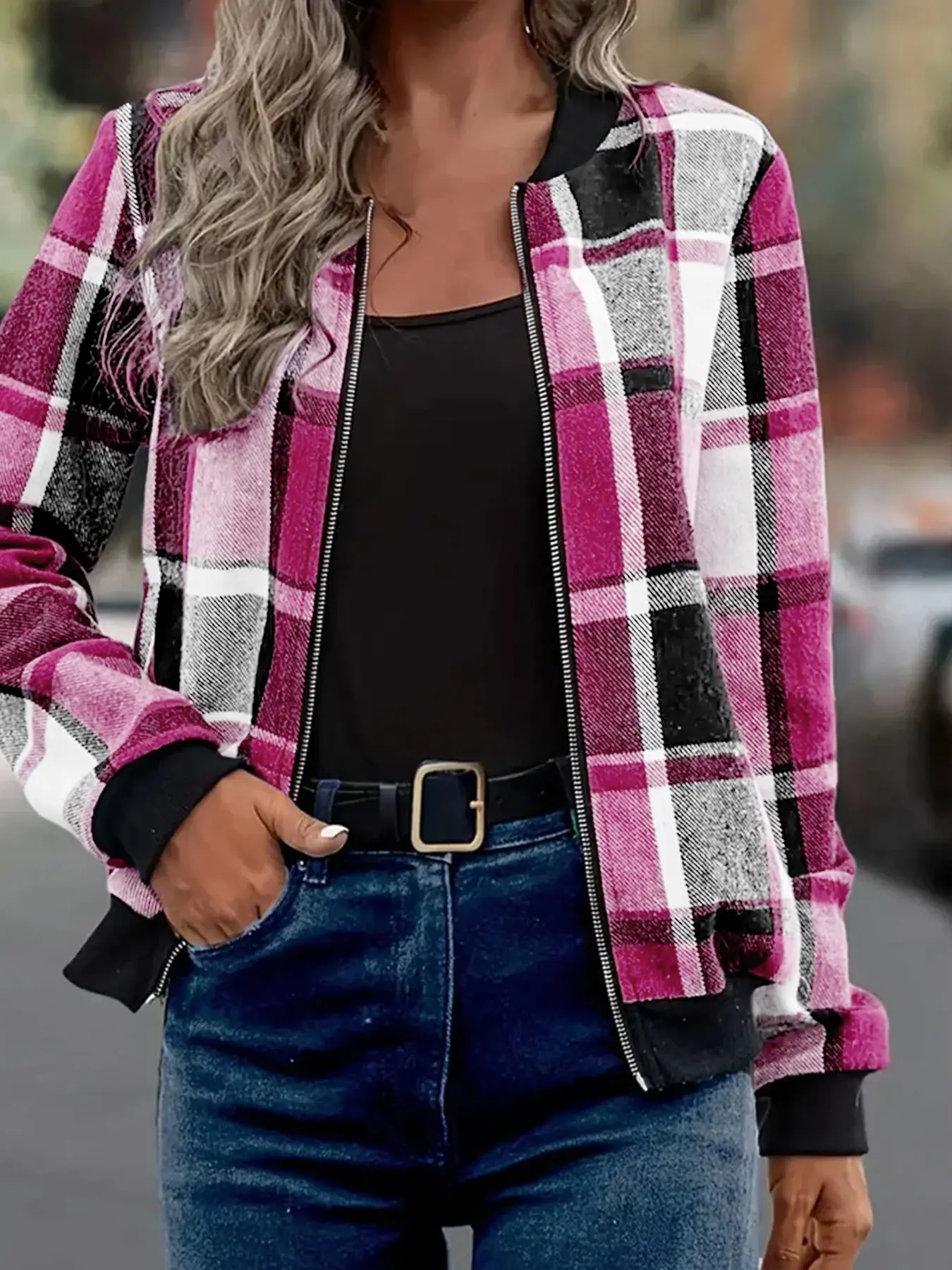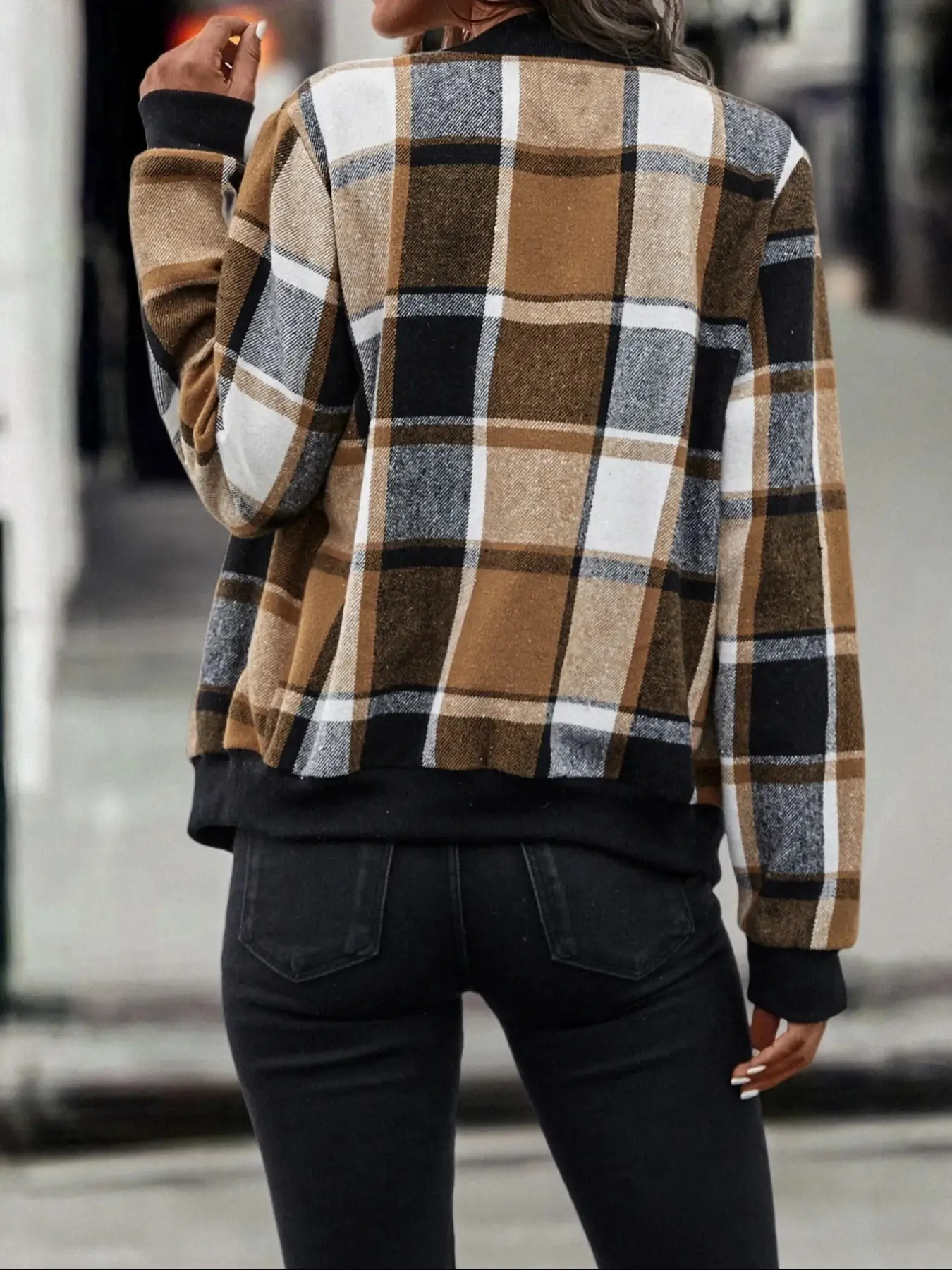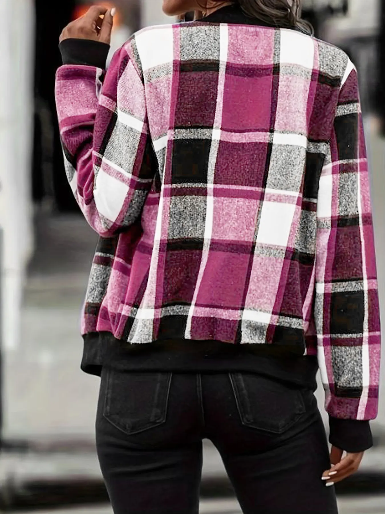 Cute jacket runs small so I’ll suggest size up one size. I’m normally in a medium and was expecting this to fit oversized since I ordered large and fit snuggly. I’m 5’2, 150lbs. I marked it down one star due to fabric pills forming after washing on delicate cycle with woolite. It’s not been worn yet