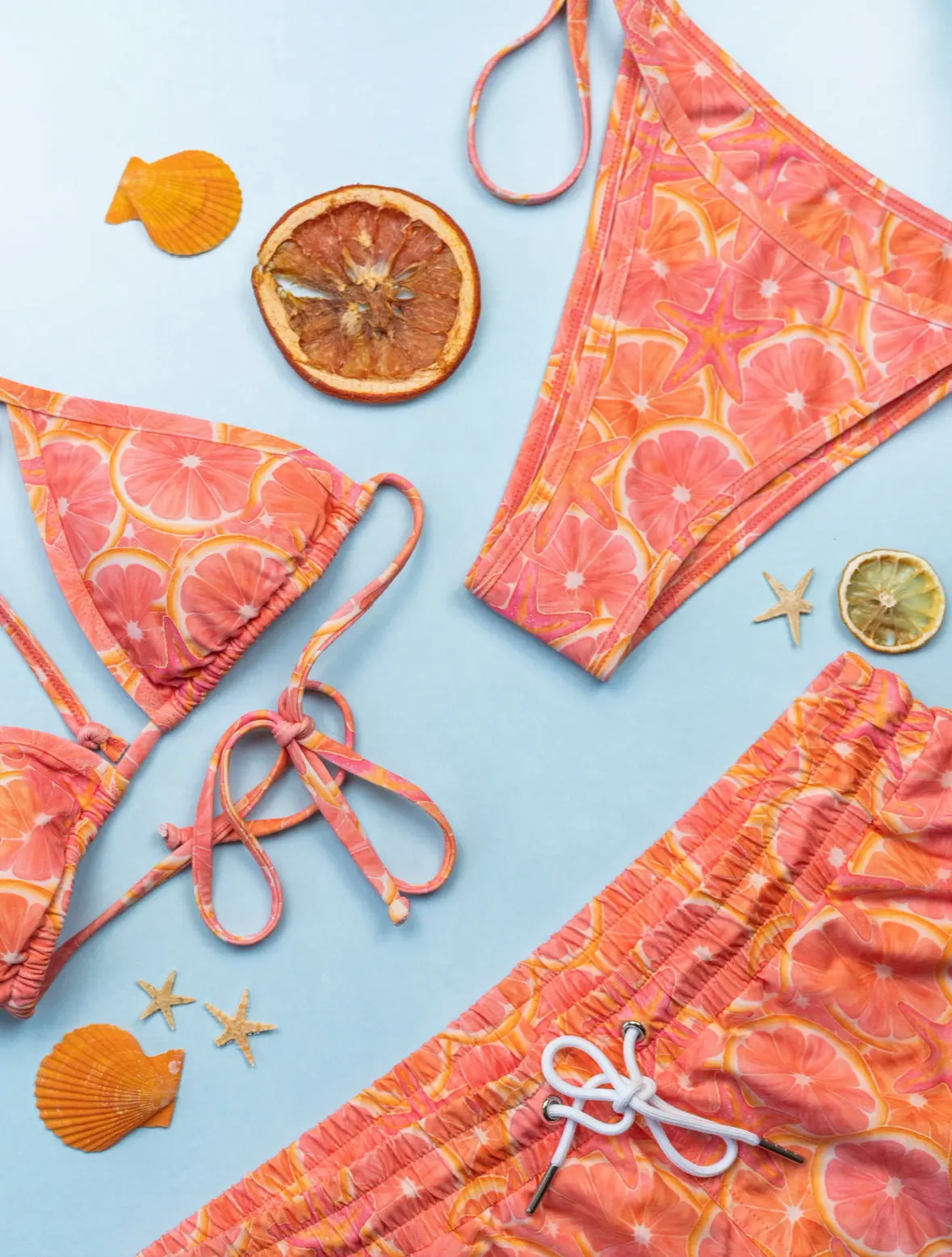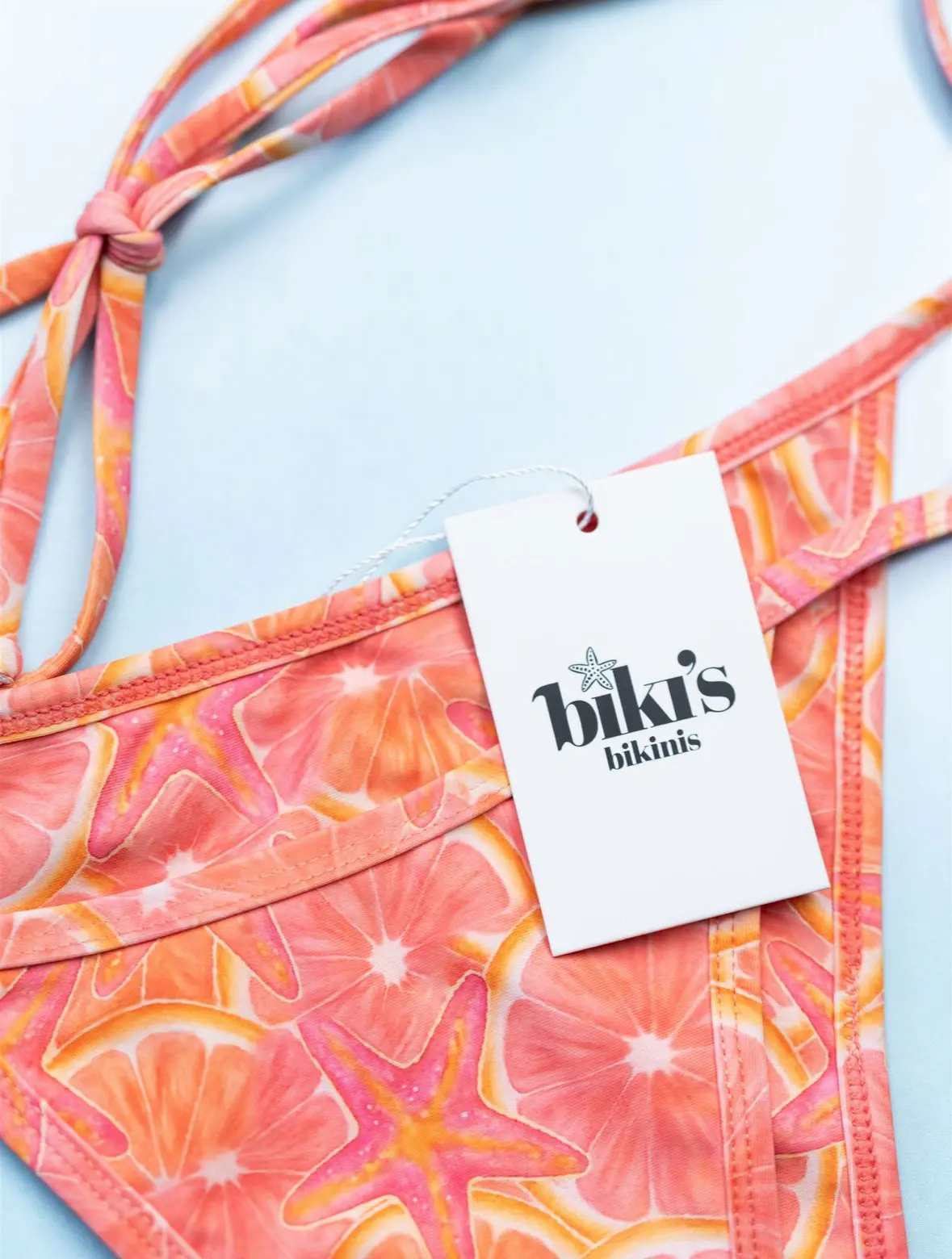 The bottoms that say, “I came to turn heads.” 🔥 With vibrant stitching and ties that adjust to your vibe, these are the pair you’ll want for every summer moment. Pair them with your top and your man’s matching Bombshell trunks for a duo that does damage.