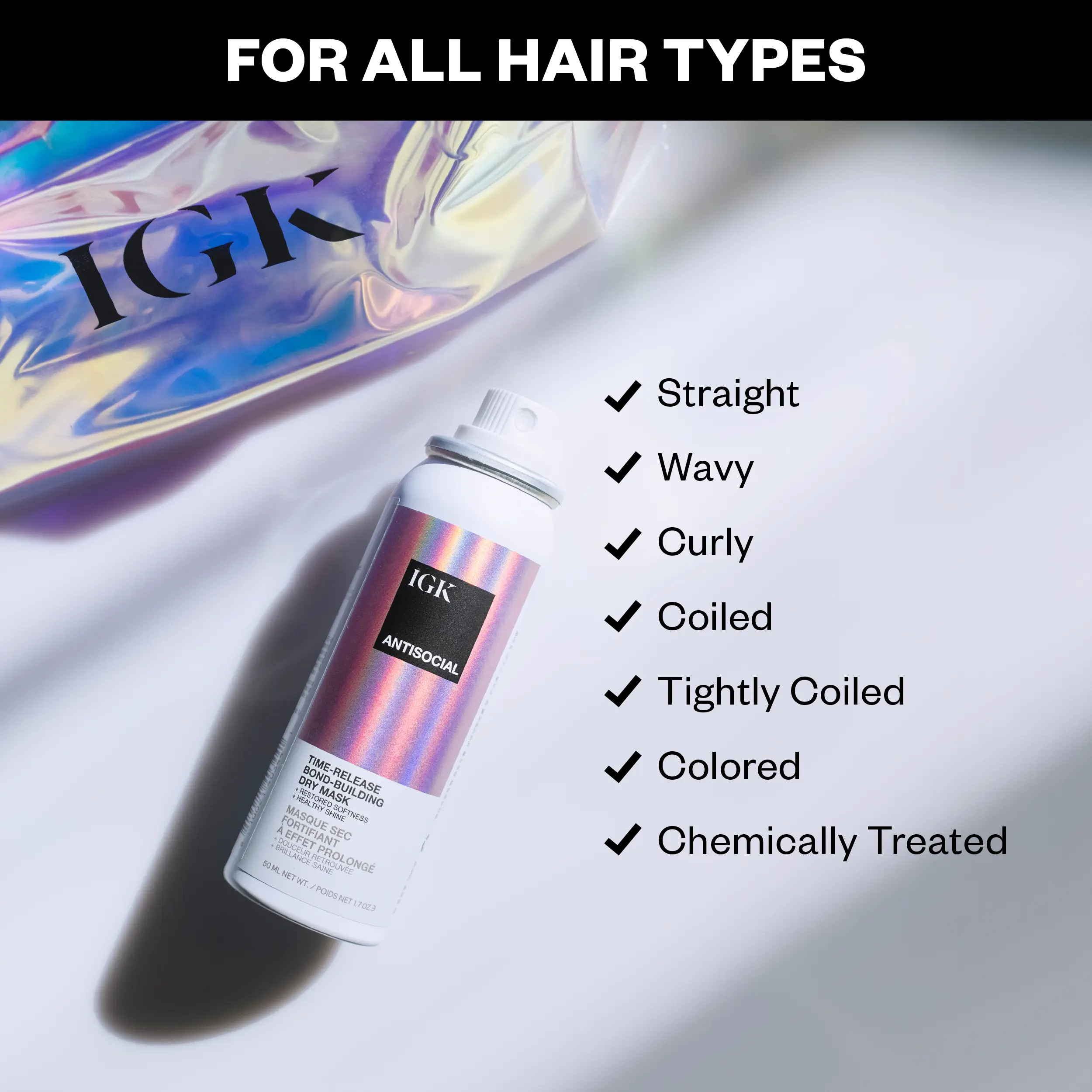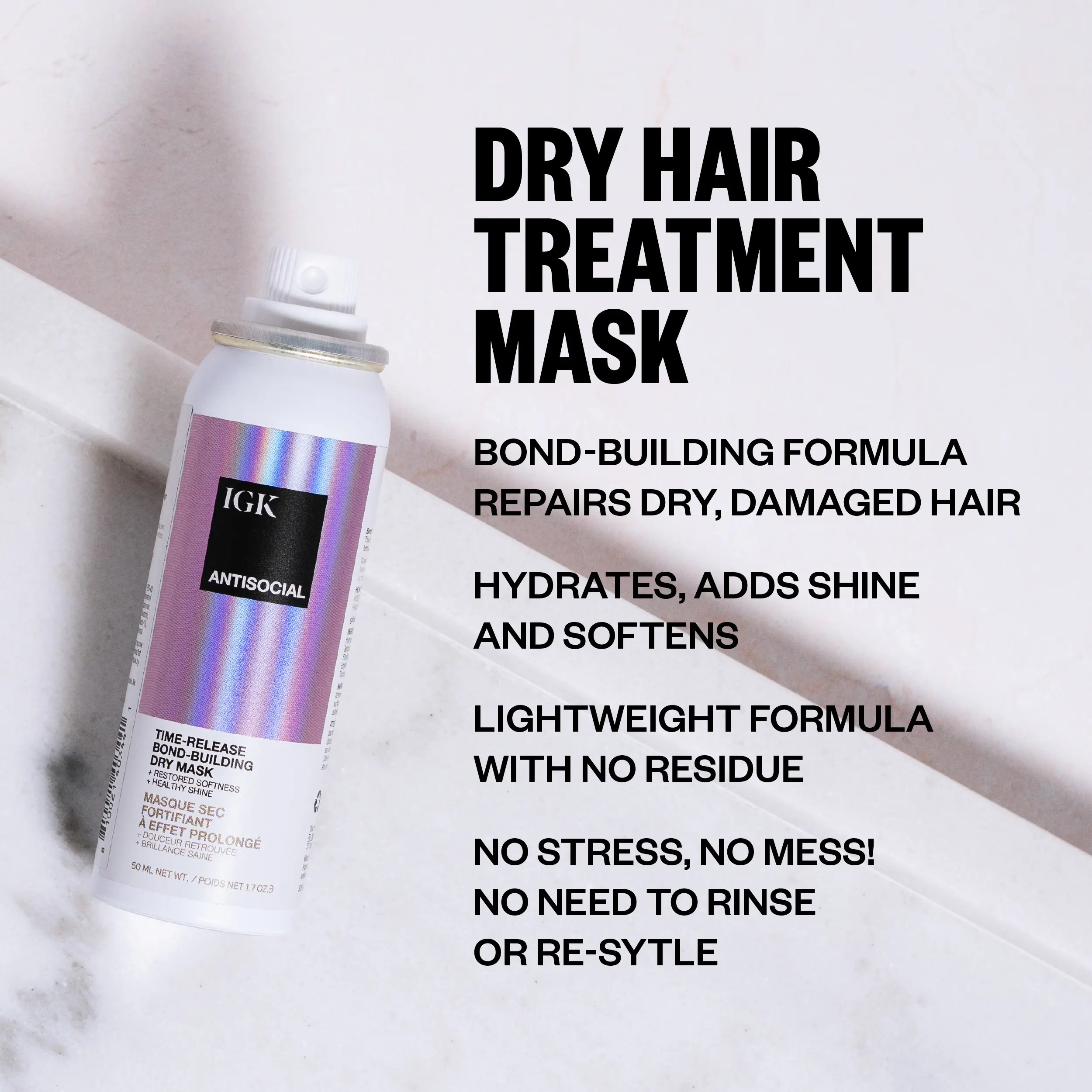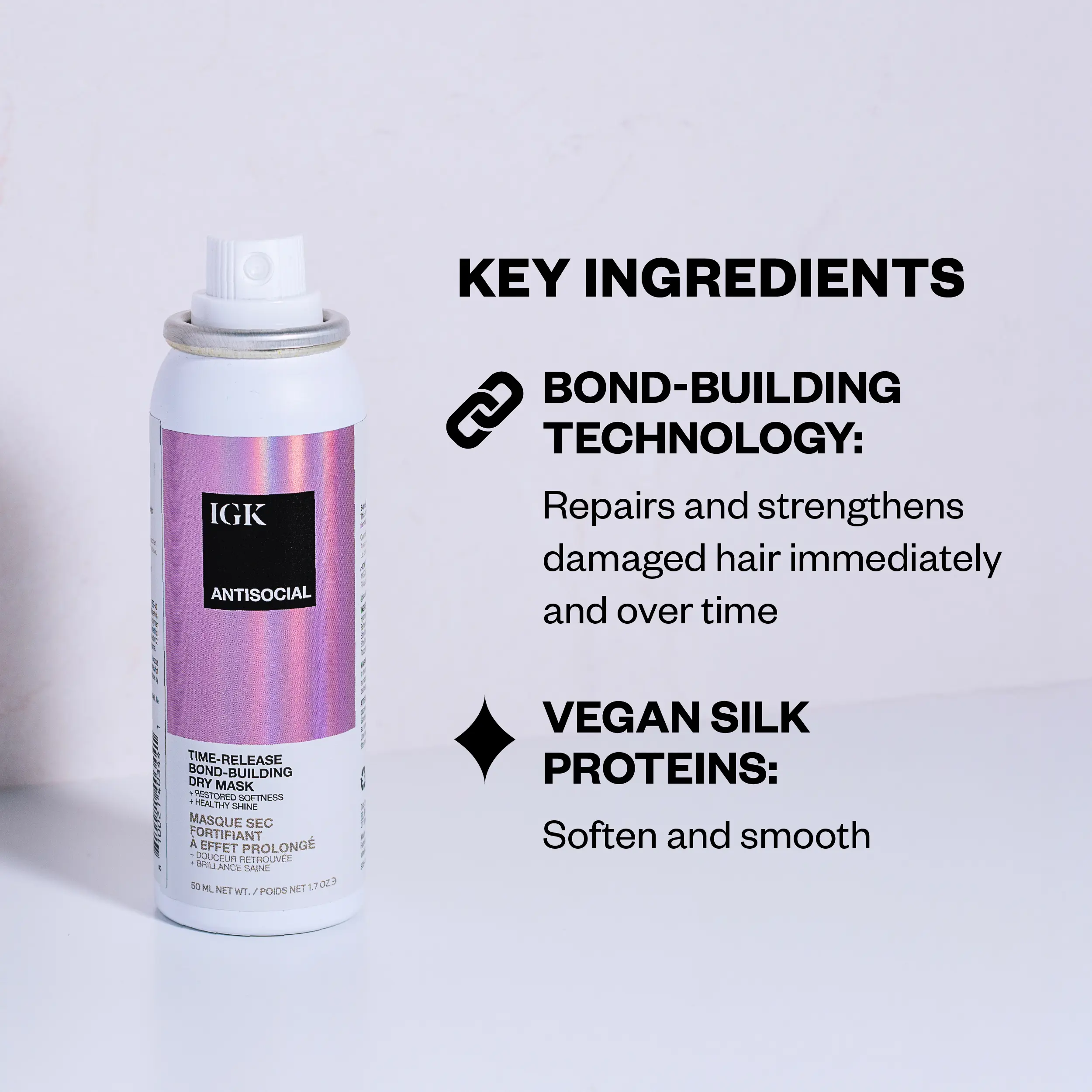 IGK ANTISOCIAL TRAVEL SIZE Bond-Building Dry Hair Mask | Repair + Soften + Smoothes + Strengthens + Shine | Vegan + Cruelty Free | 50ml | 1.7 oz