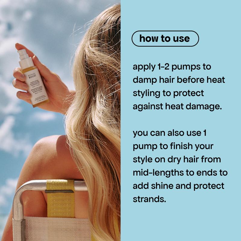 | Ingredients | Heat Protect - Aqua/Water/Eau,Aloe Barbadensis Leaf Juice*,Propanediol,Glycerin,Sorbitan Oleate Decylglucoside Crosspolymer,Pentylene Glycol,Caprylyl Glycol,Hydrolyzed Jojoba Esters,Sodium Benzoate,Sodium Chloride,Panthenol,Potassium Sorbate,Ethylhexylglycerin,Jojoba Esters,Parfum/Fragrance,Citric Acid,Linalool,Terpineol,Chamomilla Recutita (Matricaria) Flower Extract*,Equisetum Arvense Extract,Melaleuca Alternifolia (Tea Tree) Leaf Oil,Rosmarinus Officinalis (Rosemary) Leaf Extract*,Urtica Dioica (Nettle) Leaf Extract,Centaurea Cyanus Flower Extract,Davidsonia Jerseyana Fruit Extract. *Certified Organic Ingredients,Dry Shampoo - Isobutane,Hydrofluorocarbon 152a,Alcohol Denat,Oryza Sativa (Rice) Starch,Propane,Isopropyl Myristate,Cetrimonium Chloride,Rosmarinus Officinalis (Rosemary) Leaf Oil Aqua,Isoamyl Laurate,Fragrance/Parfum.,Finishing Oil - Isododecane,Coco-Caprylate,Dipentaerythrityl Hexa C5-9 Acid Esters,Heptyl Undecylenate,Polyglyceryl-3 Polyricinoleate,Sorbitan Isostearate,Neopentyl Glycol Diheptanoate,Sulfated Castor Oil,Polyglyceryl-3 Betainate Malate,Aqua/Water/Eau,Tocopherol,Benzyl Salicylate,Canola Oil,Persea Gratissima (Avocado) Oil,Prunus Armeniaca (Apricot) Kernel Oil*,Squalane,Vitis Vinifera (Grape) Seed Oil,Citronellol,Benzyl Benzoate,Hexamethylindanopyran,Limonene,Daucus Carota Sativa (Carrot) Seed Oil,Helianthus Annuus (Sunflower) Seed Oil,Beta-Carotene,Daucus Carota Sativa (Carrot) Root Extract,Tocopheryl Acetate.*Certified Organic Ingredients |