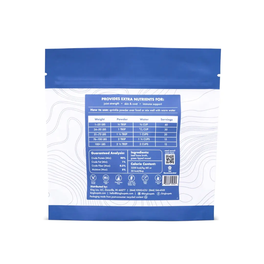 Great product at a reasonable price! My dog loves it and it seems to be helping with her joints! We love all our King Lou products and this is no exception.