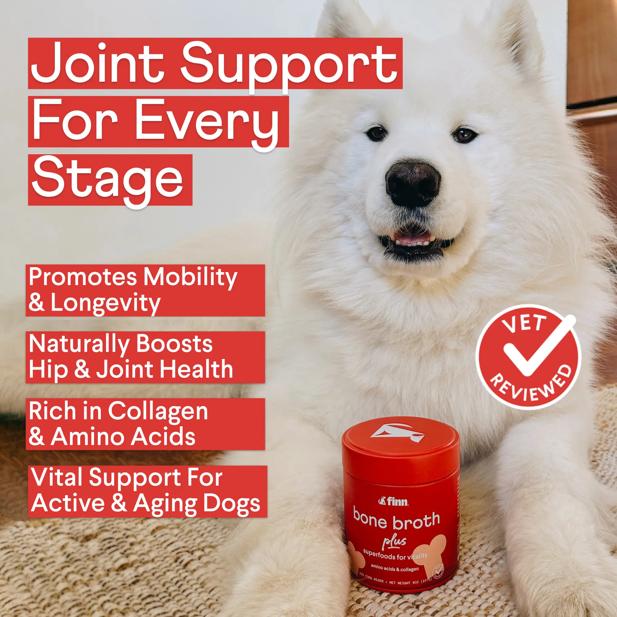 & longevity • Naturally boosts hip & joint health • Vital support for active & aging dogs • Rich in collagen & essential amino acids