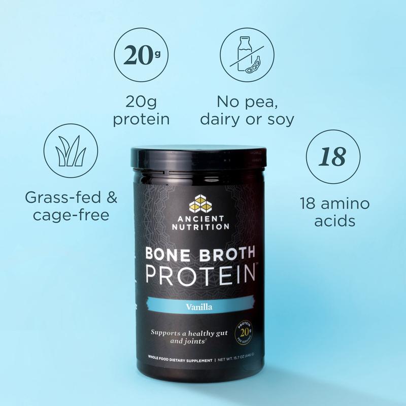 Vanilla Bone Broth Protein is very helpful for adding to the substance and flavor of fruit and vegetable smoothies. I trust the quality of Ancient Nutrition’s Bone Broth Powders in every flavor, but this one is my favorite.