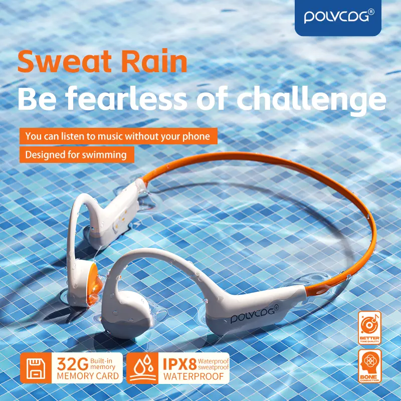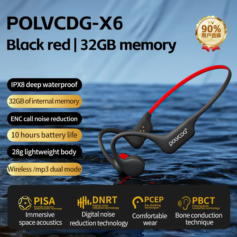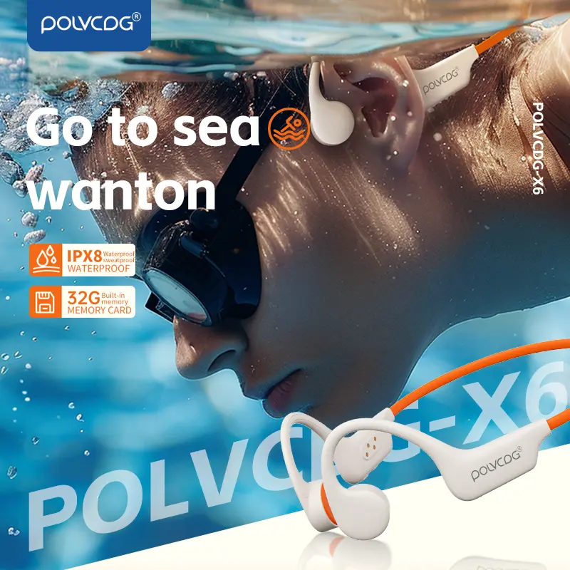 POLVCDG X6 wireless bone conduction headphones are deeply waterproof, 10 hours long battery life, 28g lightweight body 32GB large capacity.