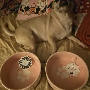 These bowls are excellent. They turned out much bigger than I expected, which was a pleasant surprise and makes them perfect for both food and water. The heavy ceramic construction feels durable and high quality, and the pink color looks adorable in my kitchen. My dogs don’t mind what they eat from, but I appreciate how sturdy and stylish these are. They stay in place while the dogs eat, wash up easily, and I was able to grab them at a great price from QVC. Overall, I’m very pleased with this purchase. 10/10 Highly Recommend. I will keep buying from QVC because they have the best quality.