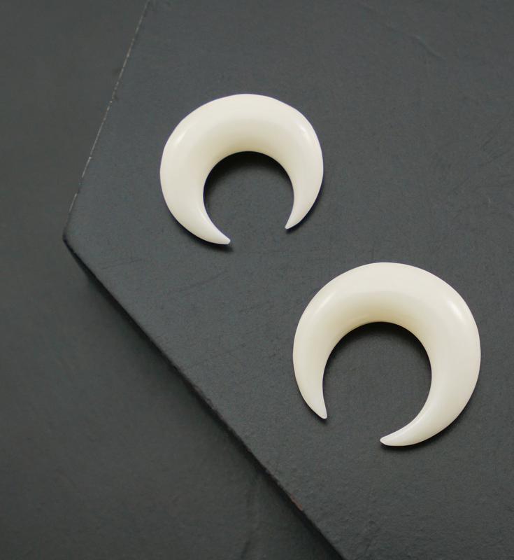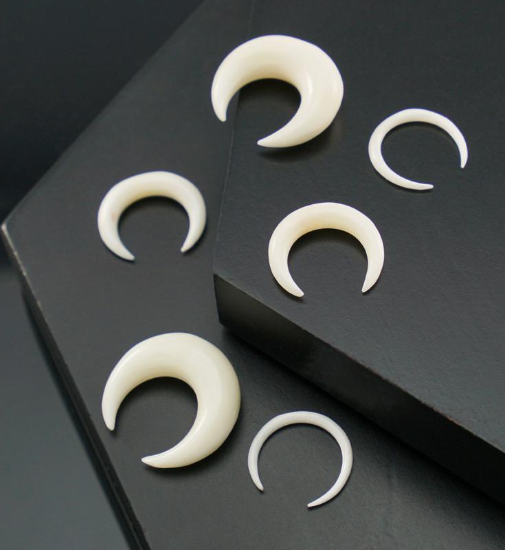Septum pinchers handcrafted from water buffalo bone. Polished and smooth. Available in sizes 14G (1.6mm) - 2G (6mm). You can wear these in your stretched septum or stretched ears! Do not use these to stretch your septum or ears. Please note that each piece will be unique in color and pattern due to the nature of the bone. Sold individually (1pc). Purchase 2 for a pair. See below for full measurements of each size.