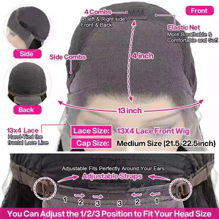 【Lace wig cap size】22-22.5 inch medium cap with 4 combs and adjustable straps, elastic band, easy to adjust,firm and comfortable,suit most people's head perfectly.