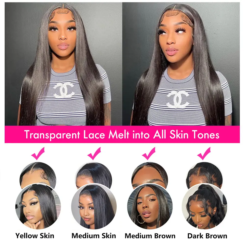 【Brazilian human hair wigs 】 13x4 transparent lace front wigs human hair wigs natural hairline with baby hair around, can be separated in middle or side, soft&durable with invisible bleached knots match all skin color well. can be dyed and curled, can be restyled as you wish
