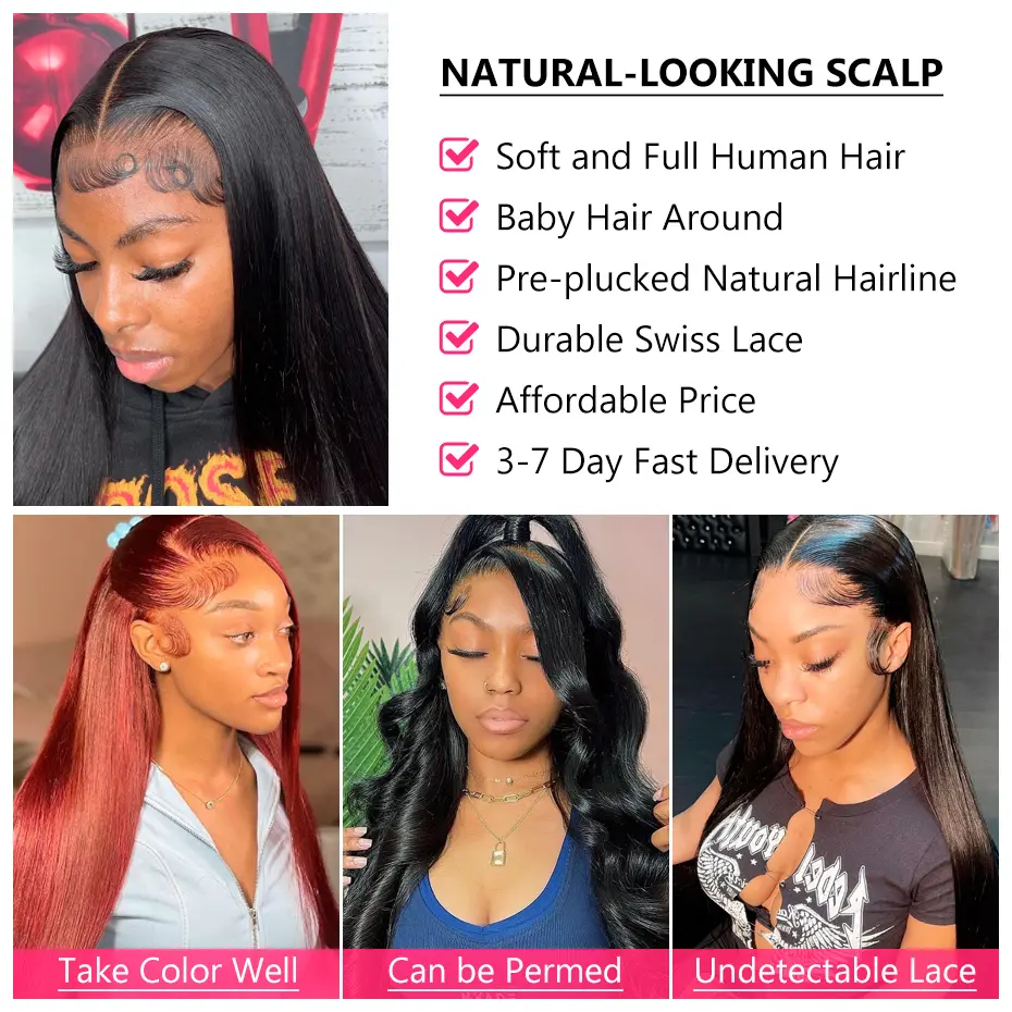 【Natural&comfortable】lace front wigs human hair, 13x4 frontal transparent lace color melted right into your skin and 180% density hair make it more natural when you take it on, breathable & soft & durable lace material make it more comfortable