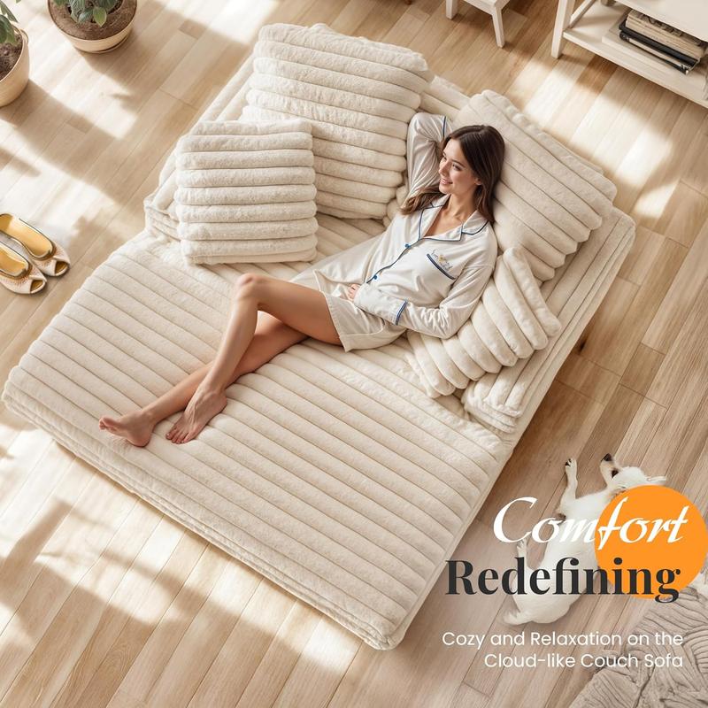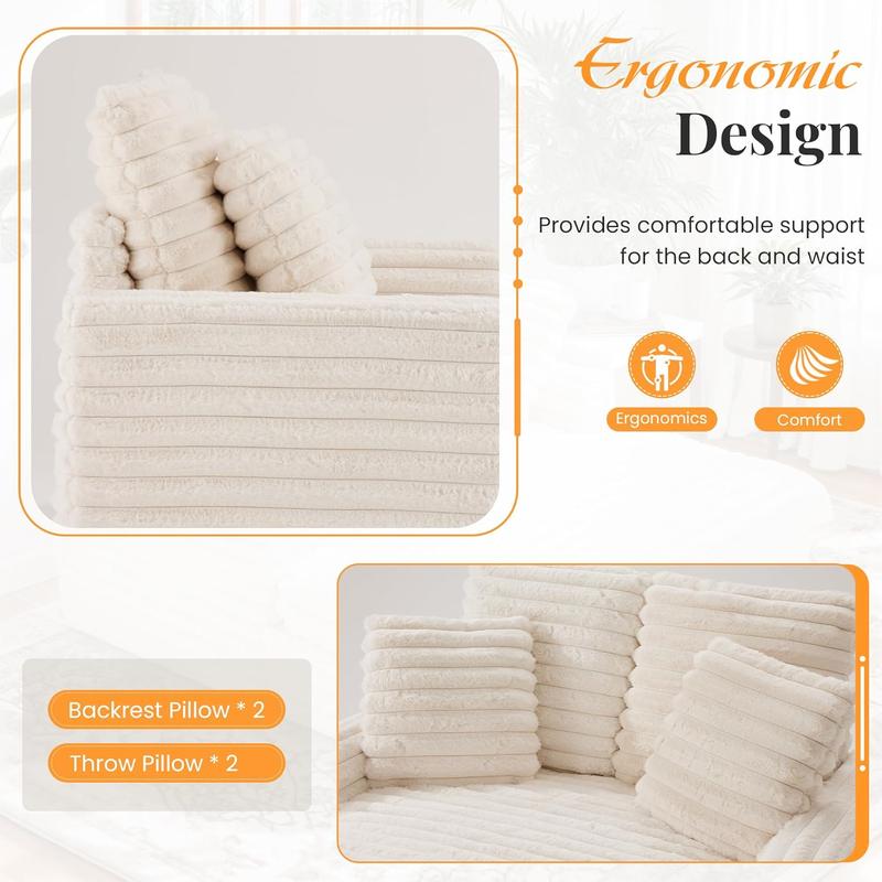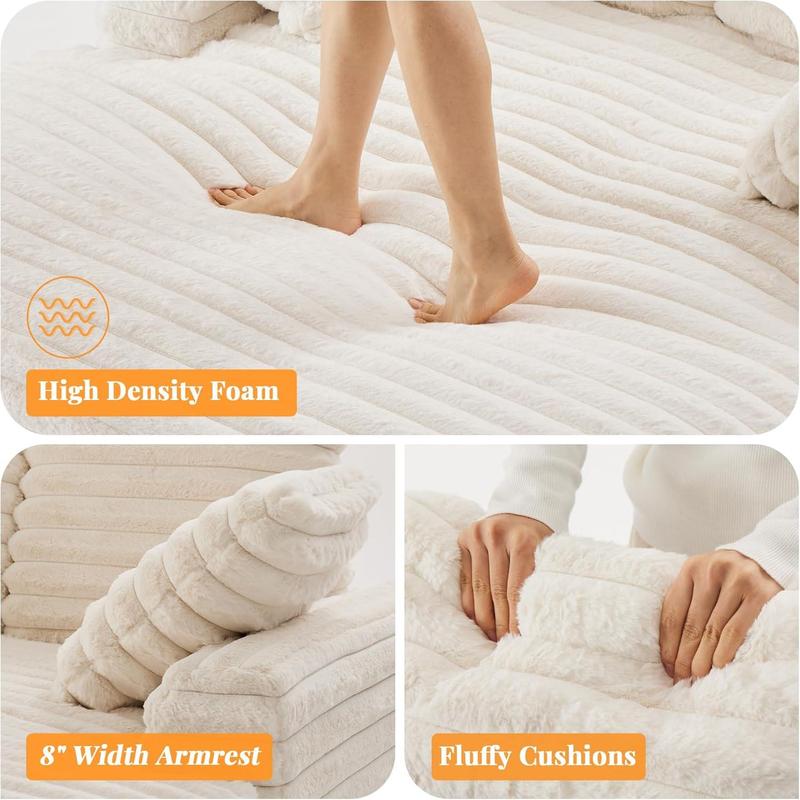 ·【Luxurious Striped Faux Fur Fabric】The lounge sofa is upholstered in soft striped faux fur fabric, featuring a delightful striped texture. It is supported by an 8-inch seat cushion brimming with dense sponge for unparalleled comfort, soothing away the day's weariness