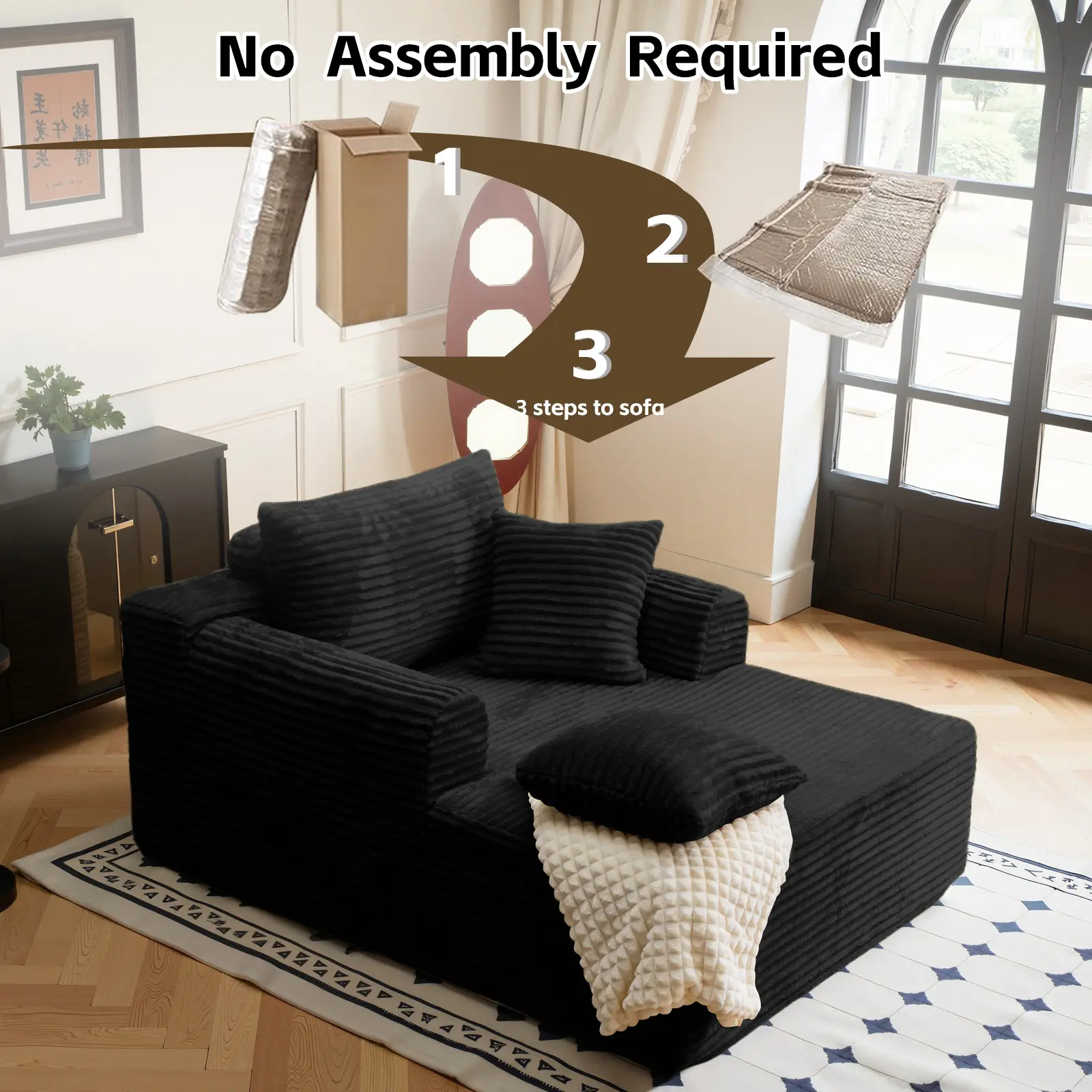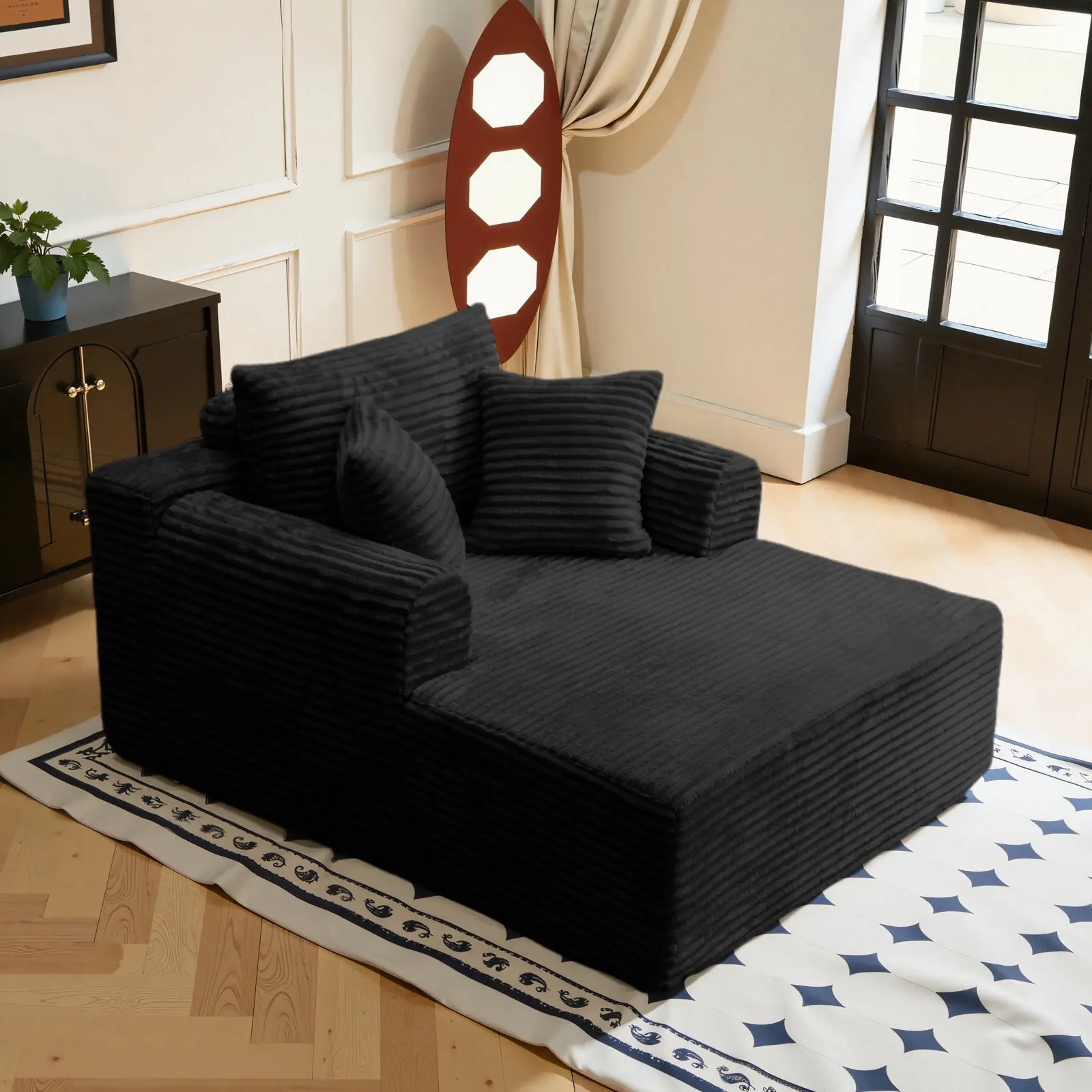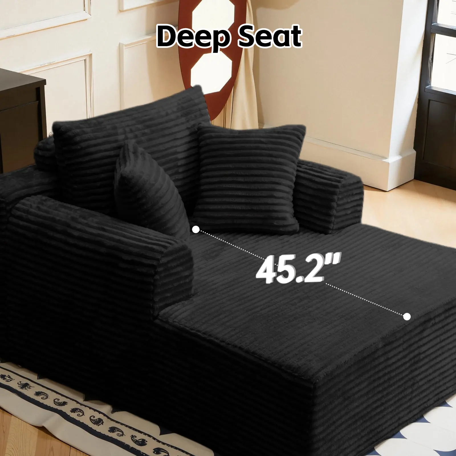 Boneless Chaise Lounge Sofa Bed with Soft Corduroy Fabric, Deep Cushion Design & Cloud Handrails – Works for Living Rooms, Bedrooms, Game Rooms, Study Rooms