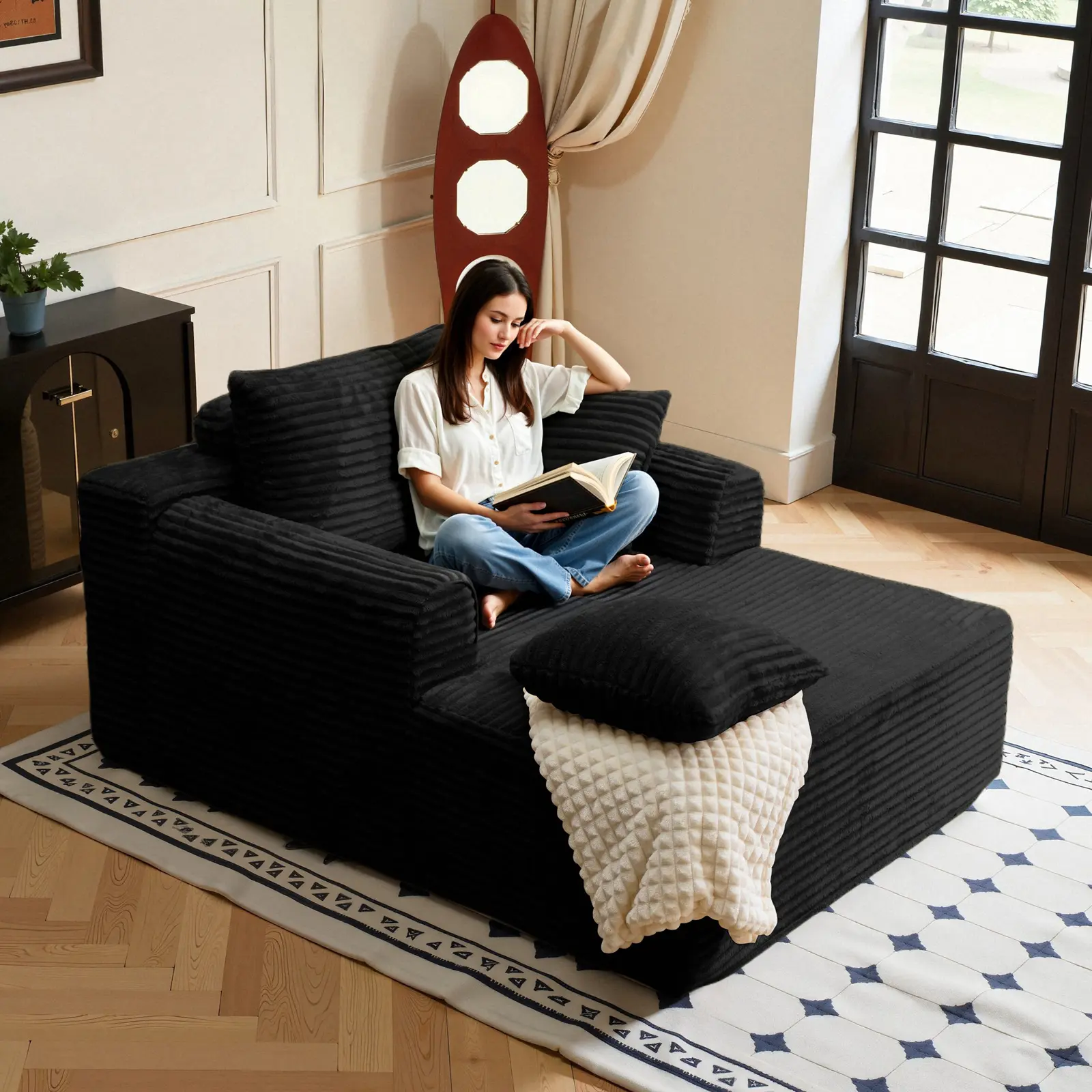 5. Boneless Chaise Lounge Sofa Bed with Soft Corduroy Fabric, Deep Cushion Design & Cloud Handrails – Works for Living Rooms, Bedrooms, Game Rooms, Study Rooms