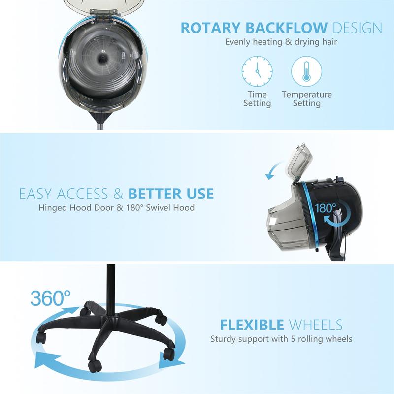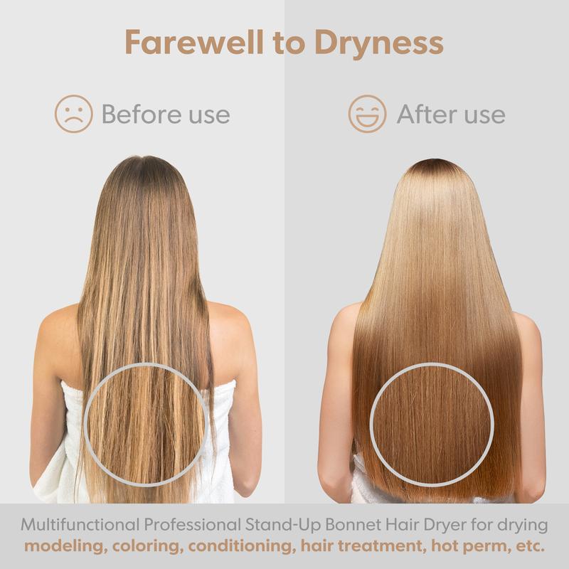 ·The Hooded Hair Dryer is designed with a rotary backflow technique, making sure to heat hair evenly in order to give hair a warm message in a healthy way.