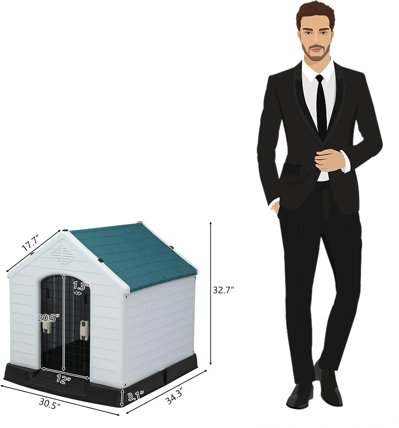 ·【Medium Dog House】- The outdoor dog house accommodates small to medium dog breeds. Keep your pet warmer during colder months and cooler during hotter months. Measures: 34.3"x30.5"x32.7" (L*W*H). Please confirm the product dimensions are adequate for you size pet before purchase