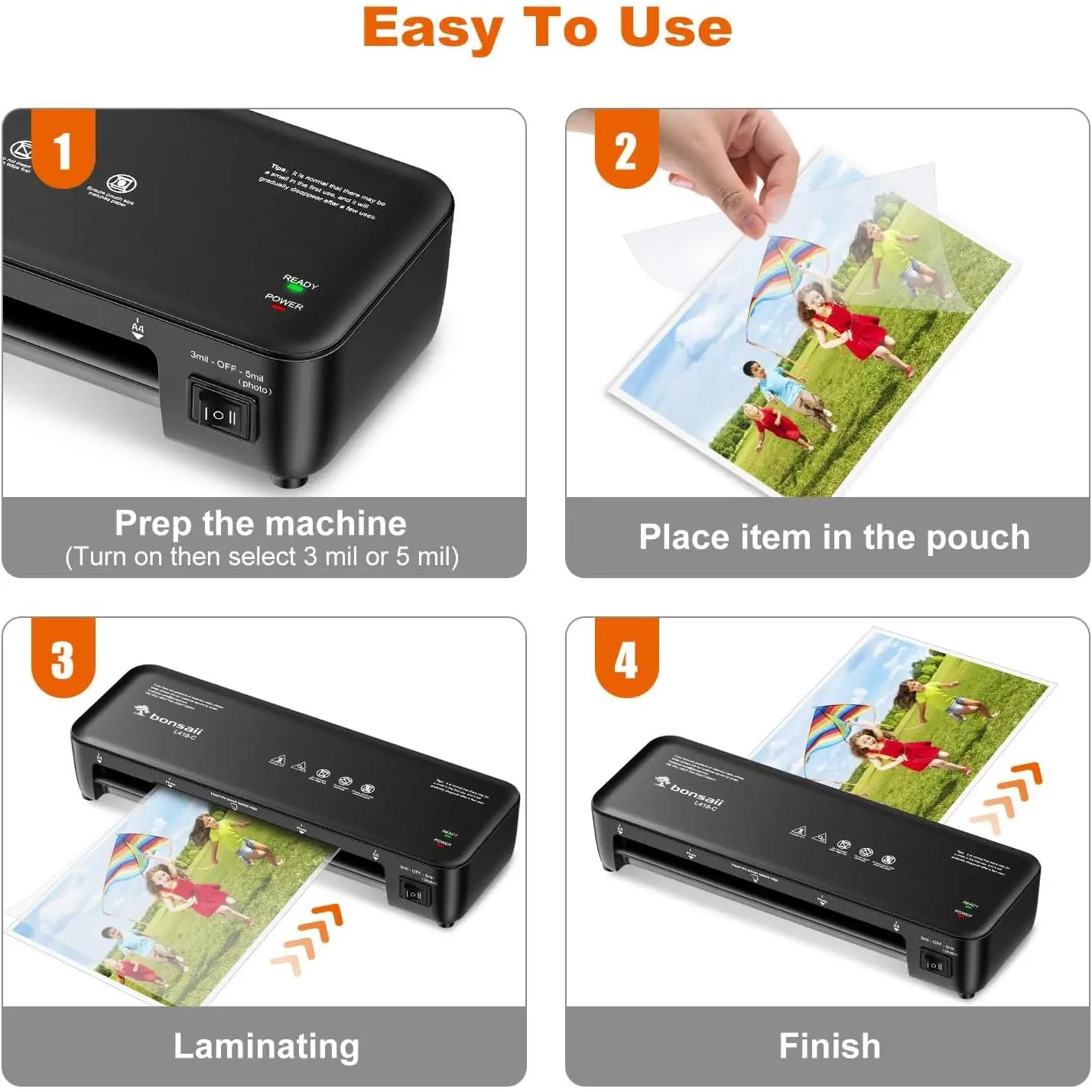 Bonsaii 9”4in1 Thermal Laminator Machine,Anti-Jam Technology for Documents,Photos&Posters,Includes 40 Laminating Sheets,Perfect for Office、School、Home