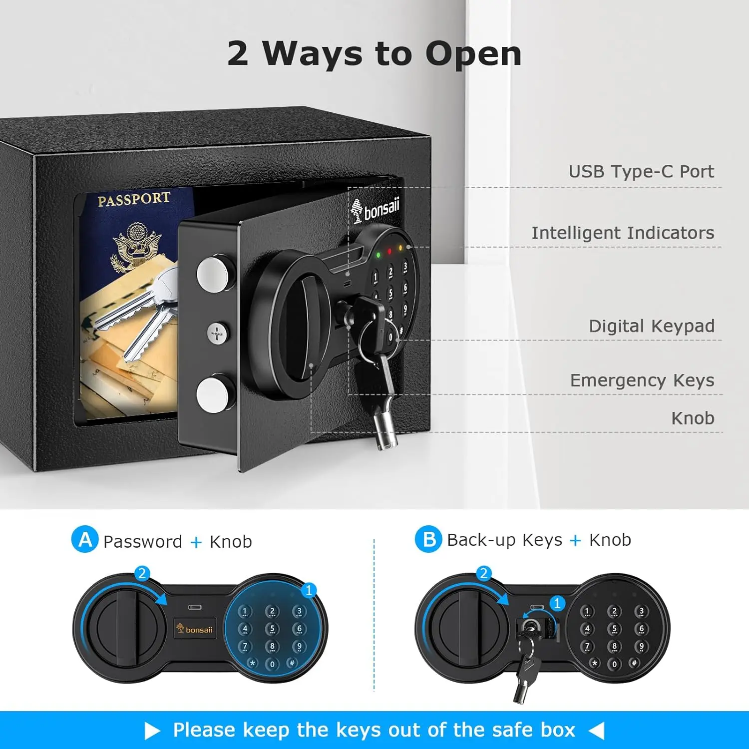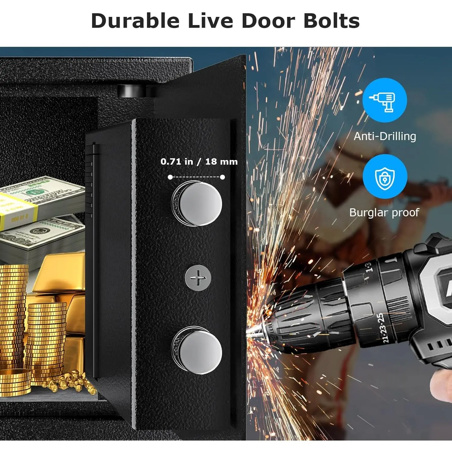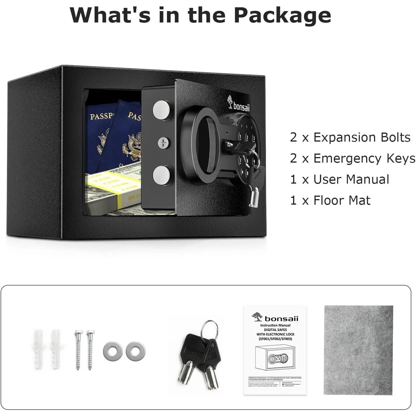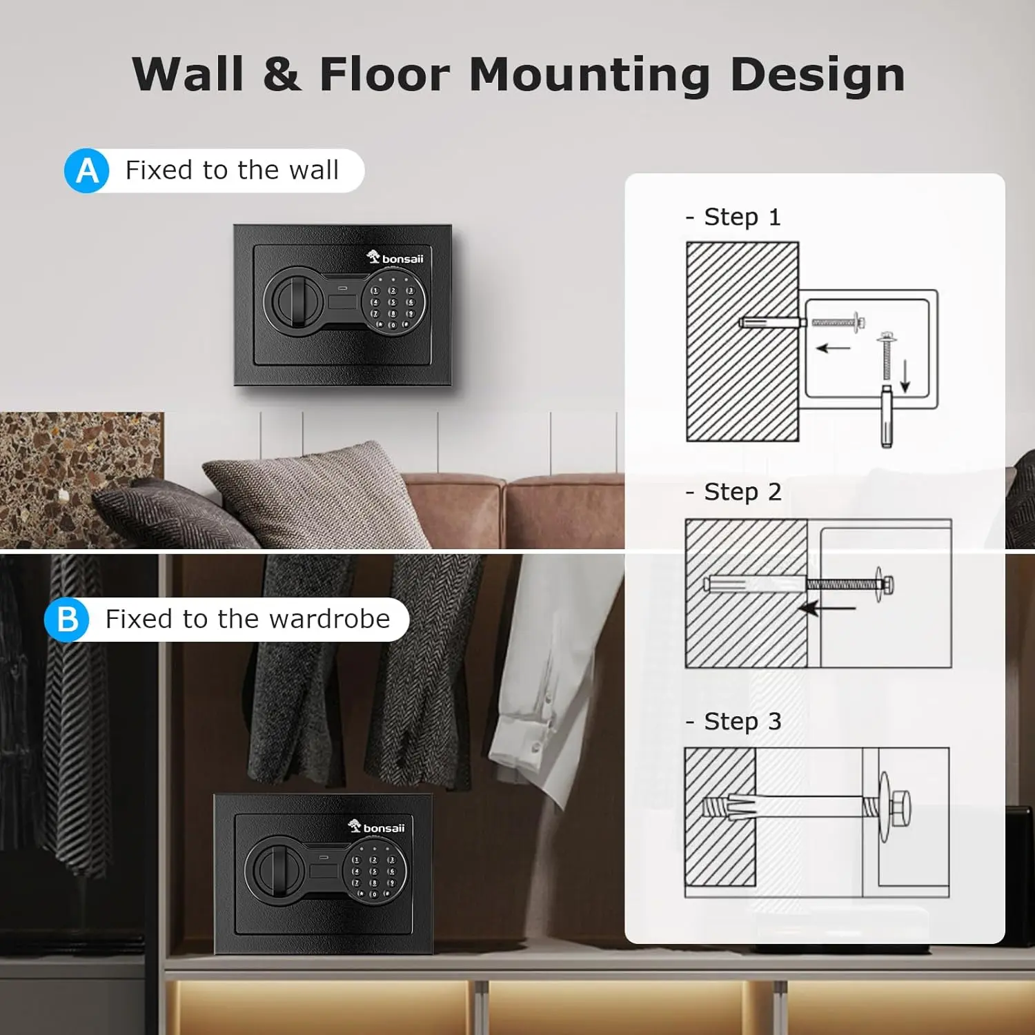 Durable Material & Solid Construction: Bonsaii safe box with key lock is made of durable SPHC steel. It features thickened live-door bolts, concealed hinges, and a pry-resistant door, providing security. The powder coat finish protects the safety box from damage and rust.