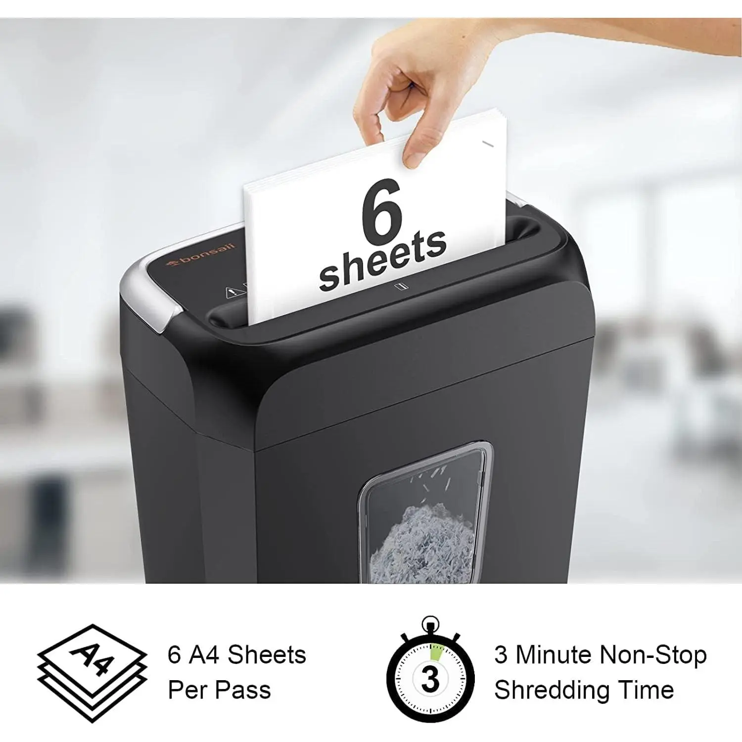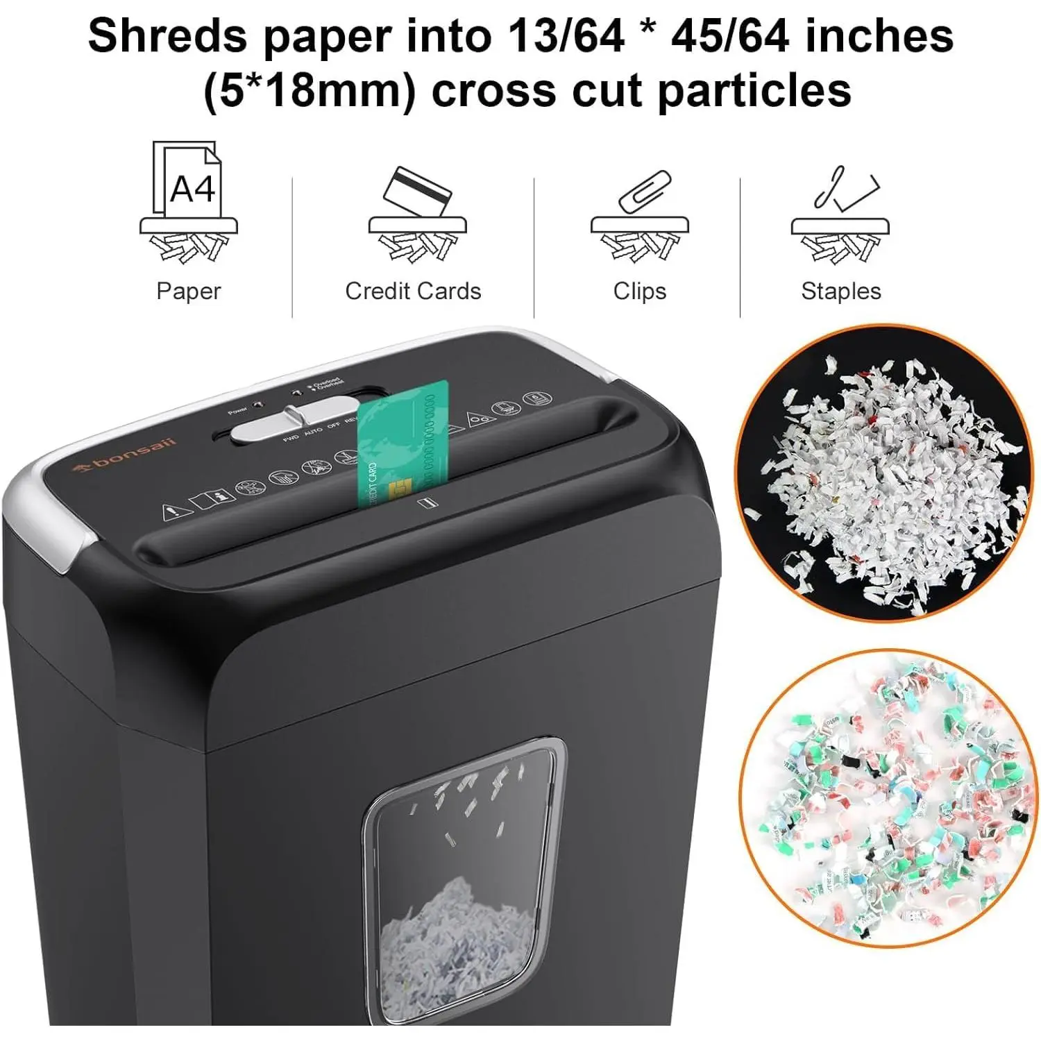 The Bonsaii 6-Sheet Crosscut Paper Shredder is a P-4 high-security shredder designed for home and office use. It features a handle for easy operation and a 3.4 Gal wastebasket for convenience. Perfect for securing documents, mail, staples, and clips. Ideal as a Father's Day gift. 🎁