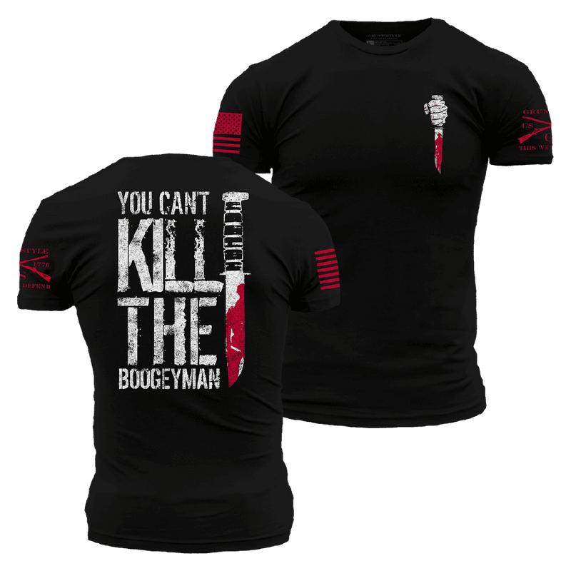 Our Supply Chief wants the room, so these have to go! We have only limited sizes and quantities available. Dare to stand out with the Boogeyman T-Shirt! This badass design features the Boogeyman, who always comes back to haunt the dreams of brave souls. You can't kill him, but you can show him who's boss with this killer t-shirt!Our Halloween Shirts are crafted with the following details: