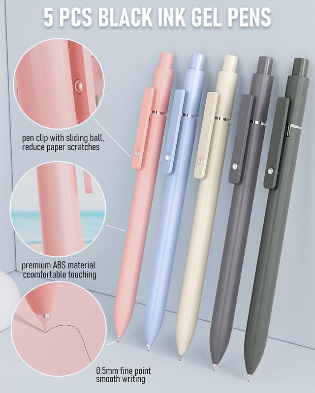 ·Smooth Writing Experience: The set includes 5 gel pens with colorful ABS barrels for a comfortable grip. These fine-point pens feature a retractable tip and rolling ball technology that prevents smearing and bleeding