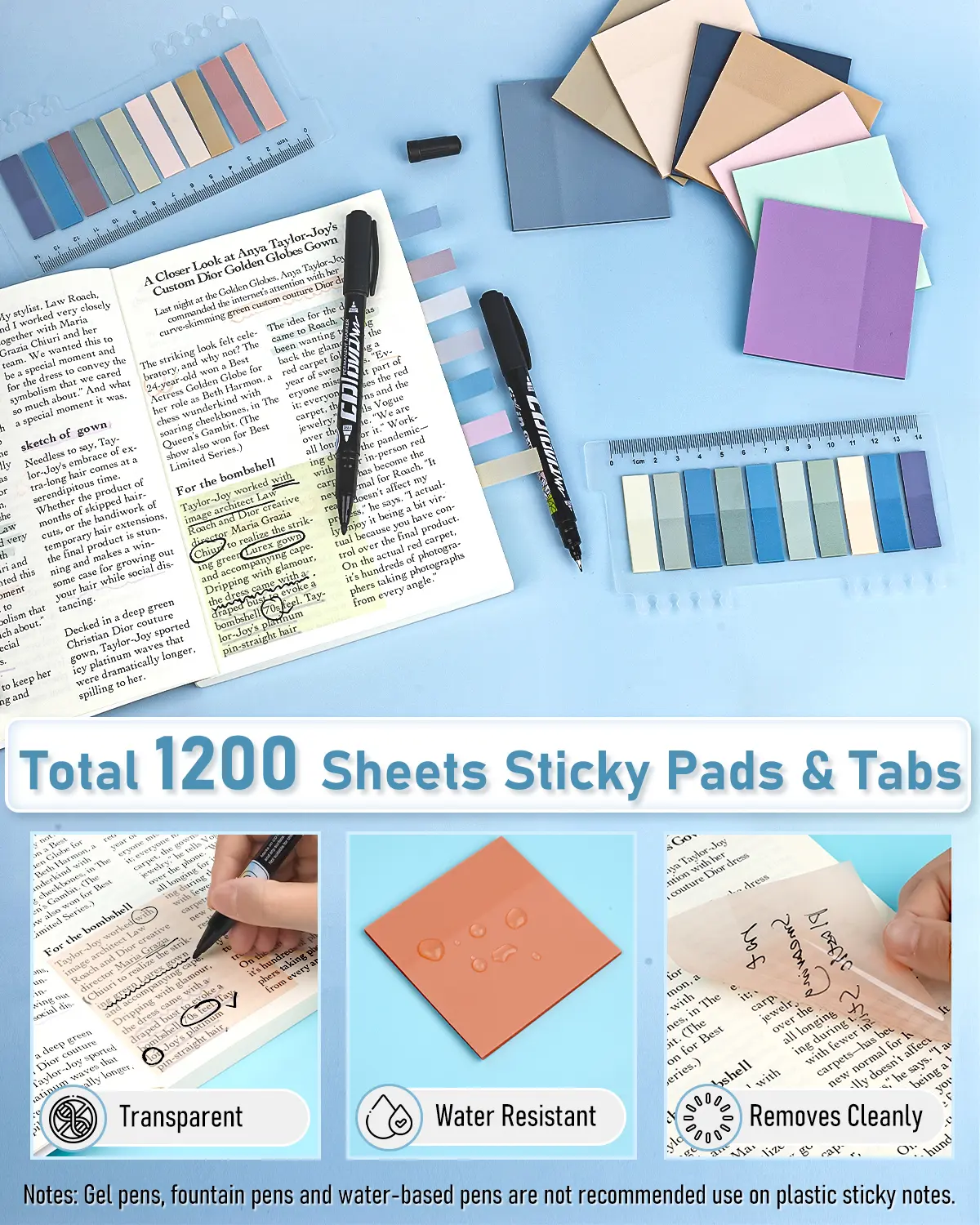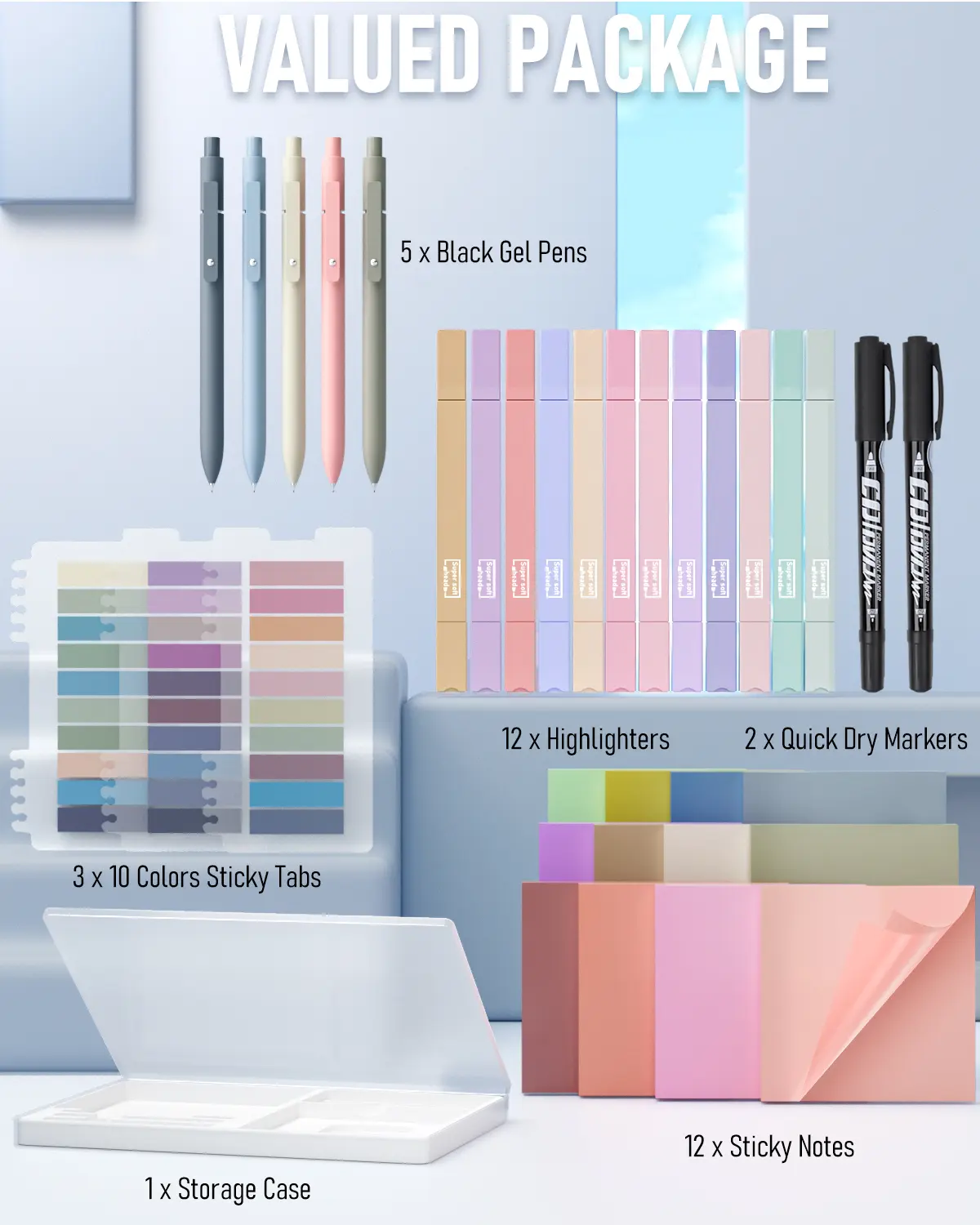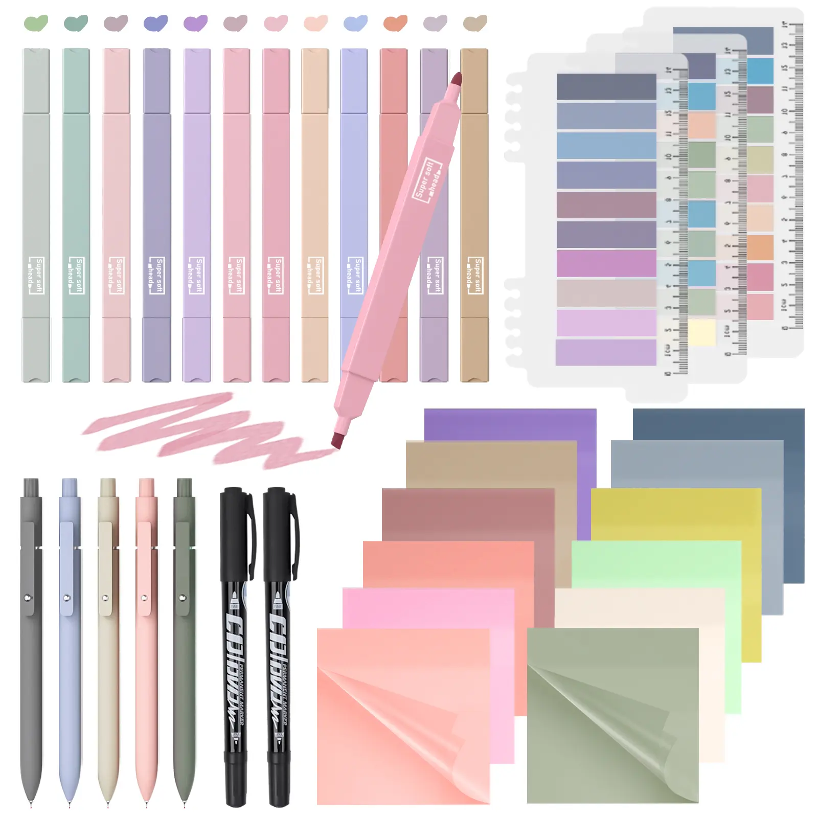 ·Value Aesthetic School Supplies: Come with 12 pack dual ended pastel colors highlighters, 5 pack black ink gel pen, 2 quick dry double head markers, 600 pack transparent sticky notes pads and 600 pack transparent sticky index tab. This is the ultimate combination of stationery essentials for office and school supplies