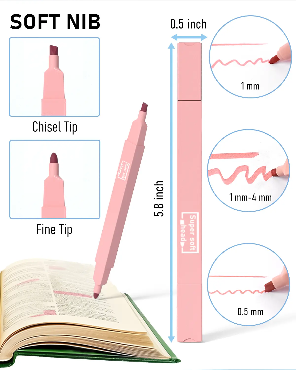 ·12 Colors Dual Ended Highlighters: Flat shape barrel with chisel and fine tip, comfortable and easy to hold. Water based ink, dry quickly and no bleeding, the highlighter color is soft and gentle, great for broad highlighting or fine underlining,ideal for travel diary, schedule, work, study, notes