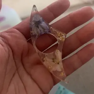 I have small fingers so I wish the hole was a little smaller. It’s beautiful, some air bubbles or spots missing resin but overall it’s sturdy
