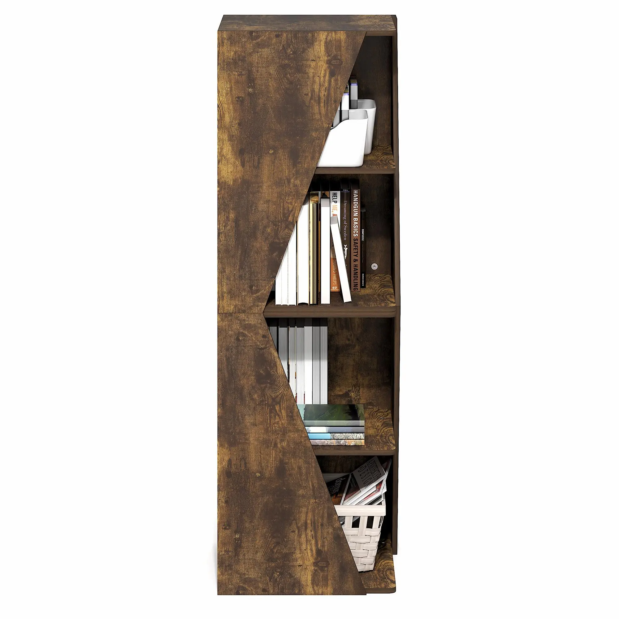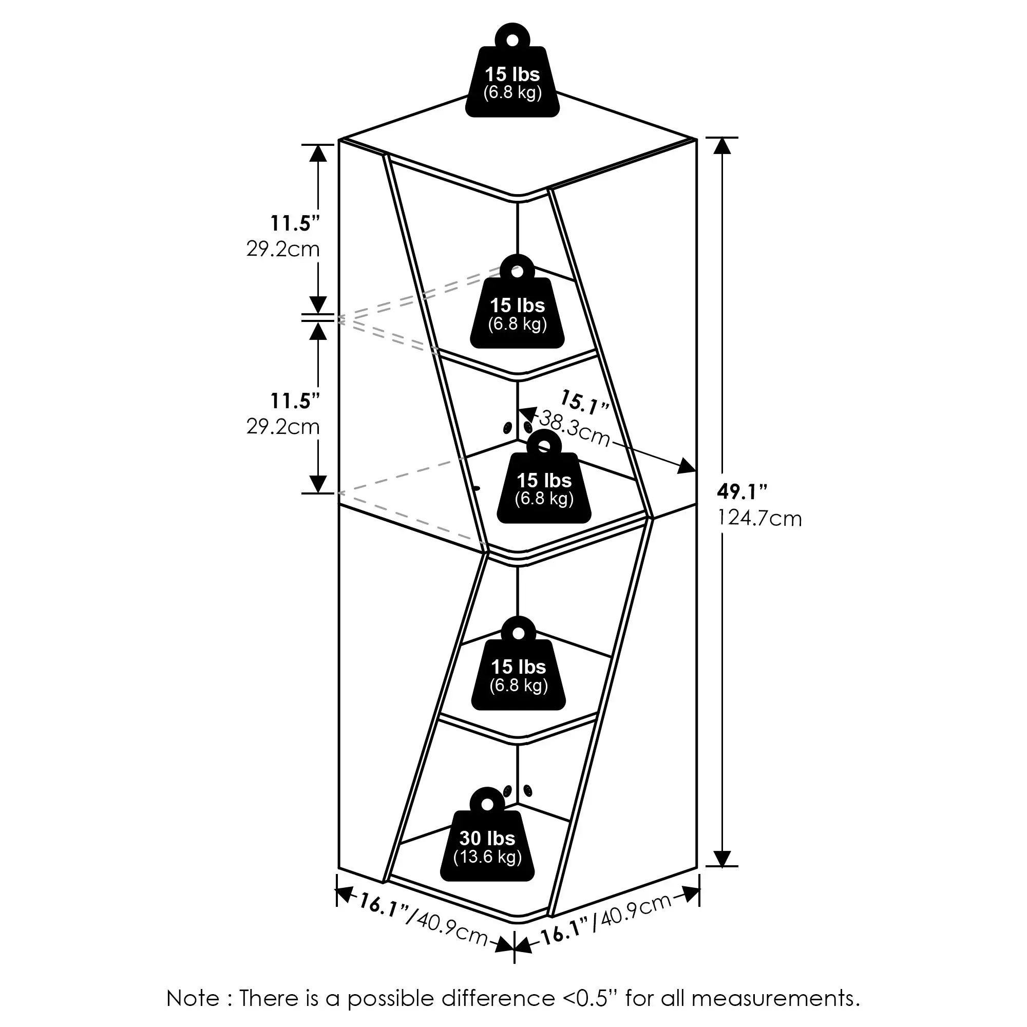 MODERN CORNER DESIGN: This stackable 2-in-1 book shelf fits neatly into room corners with a compact square footprint sized 16.1 W x 16.1 D x 49.1 H inches, ideal for living rooms, bedrooms, and home offices, making the book shelf practical and space-saving MULTI-TIER STORAGE: Use this book shelf as two shorter units or stack into one tall book shelf to display daily reads, baskets, and small decor while the top surface showcases a plant or clock for tidy everyday living WEIGHT CAPACITY: This book shelf is intended for light to moderate loads; as a practical guide plan ~10 lbs (4.5 kg) per shelf and ~10 lbs (4.5 kg) on the top to keep the book shelf safe from sagging STURDY BUILD: This book shelf uses durable engineered wood with fixed shelves and a stable base; the smooth laminated surface wipes clean for long-lasting use in living rooms, bedrooms, and study corners DIMENSION: 16.1(D) x 16.1(W) x 49.1(H) inch