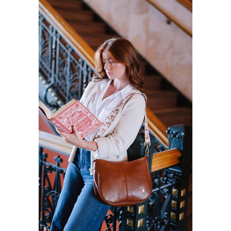 I am SO obsessed with this strap!! This is the most perfect book bag I could ever ask for. The backpack is also a really excellent size, the brown goes amazing with the bookish strap. She's so beautiful 🥹🥹