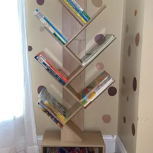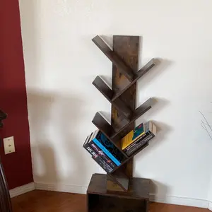 [Sturdy & Durable]The skinny bookshelf is made of high-quality board material, which is not easy to break and has a tough and durable texture. And the tree geometric bookcase is designed with backboard reinforcement, which has load-bearing capacity. For added safety and stability, we offer anti tip furniture straps that allow you to secure corner bookshelf to the wall, especially for families with and pets.