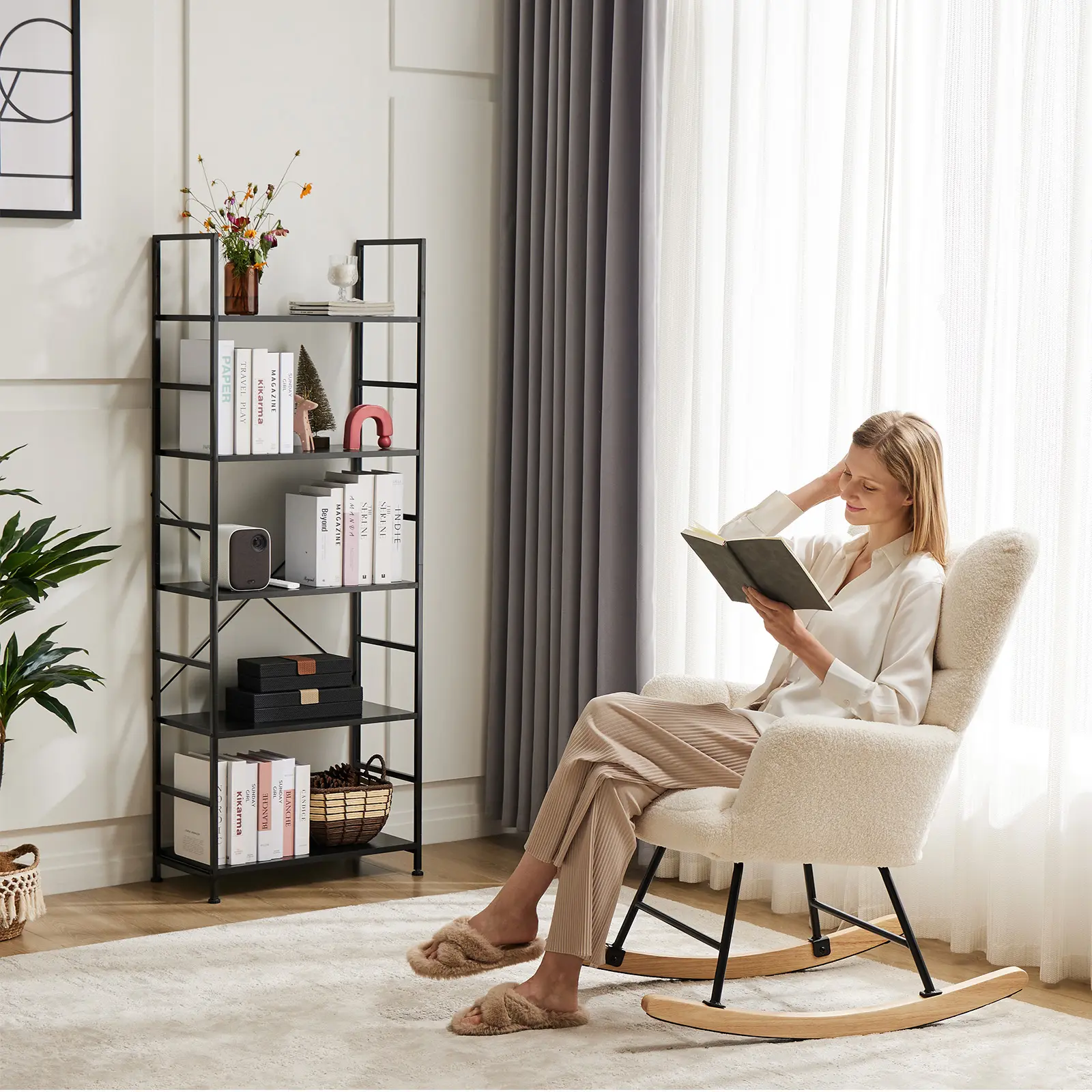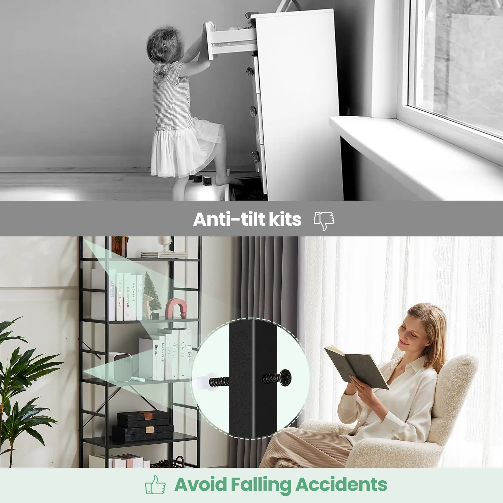 ·【Anti-tip Kits & Easy Assembly】The beautiful bookcase comes with an anti-tipping tool, please mount this tool on the wall for better stability and less unexpected injuries. You can easily complete the installation of the 5 shelf bookcase according to the installation video we provide. Quick and easy to assemble, so you can enjoy the convenience of your new bookshelf immediately.