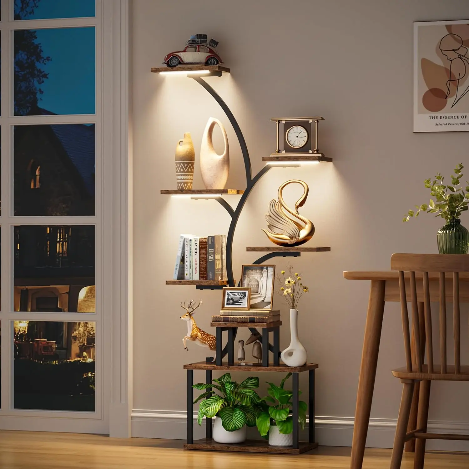 ·【Multi-functional Display Solution】More than just a storage rack, this LED-lit shelf serves as a stylish showcase for plants, art, books, and collectibles. Whether placed in the living room, bedroom, office, or entryway, it enhances the ambiance and keeps your space organized with a touch of modern elegance.