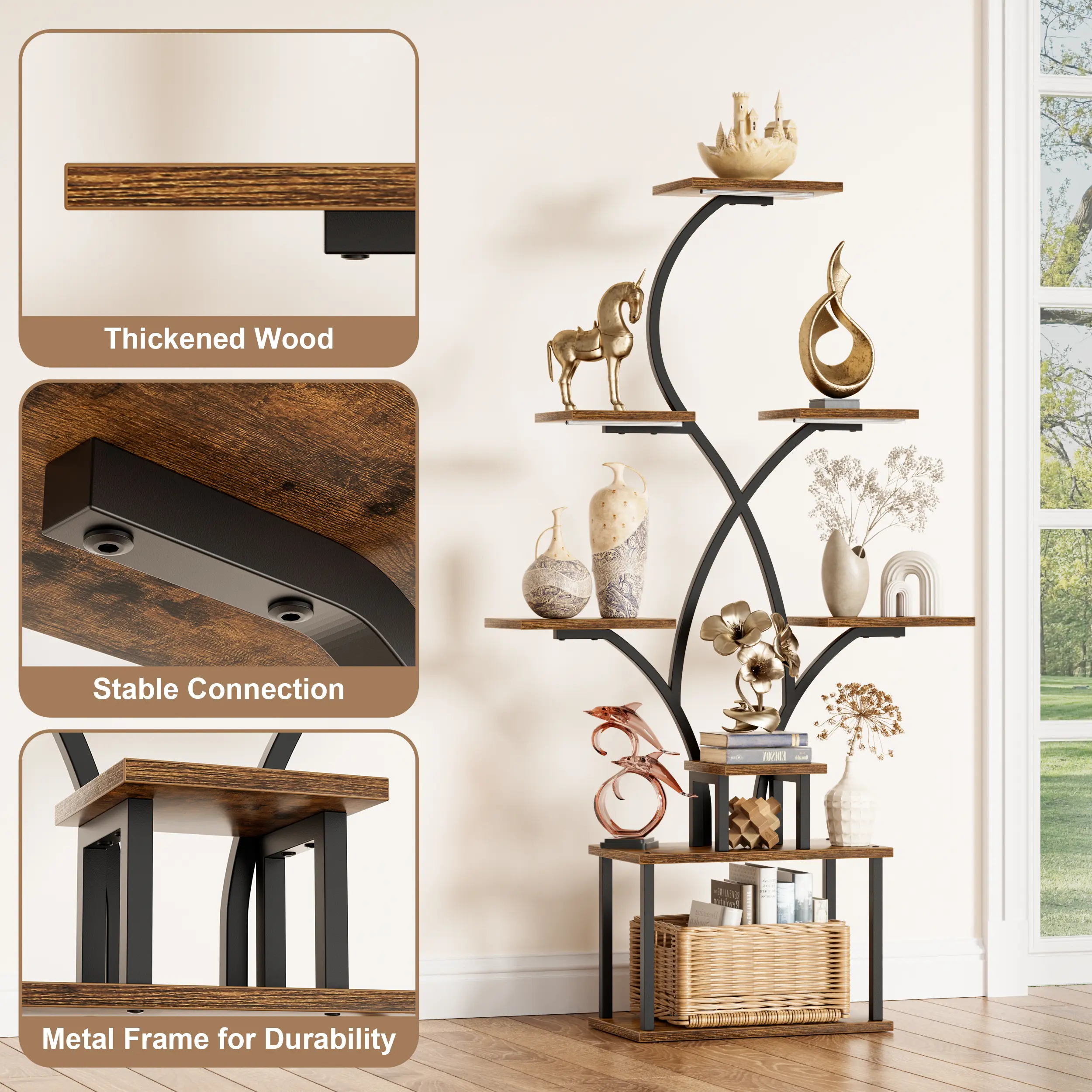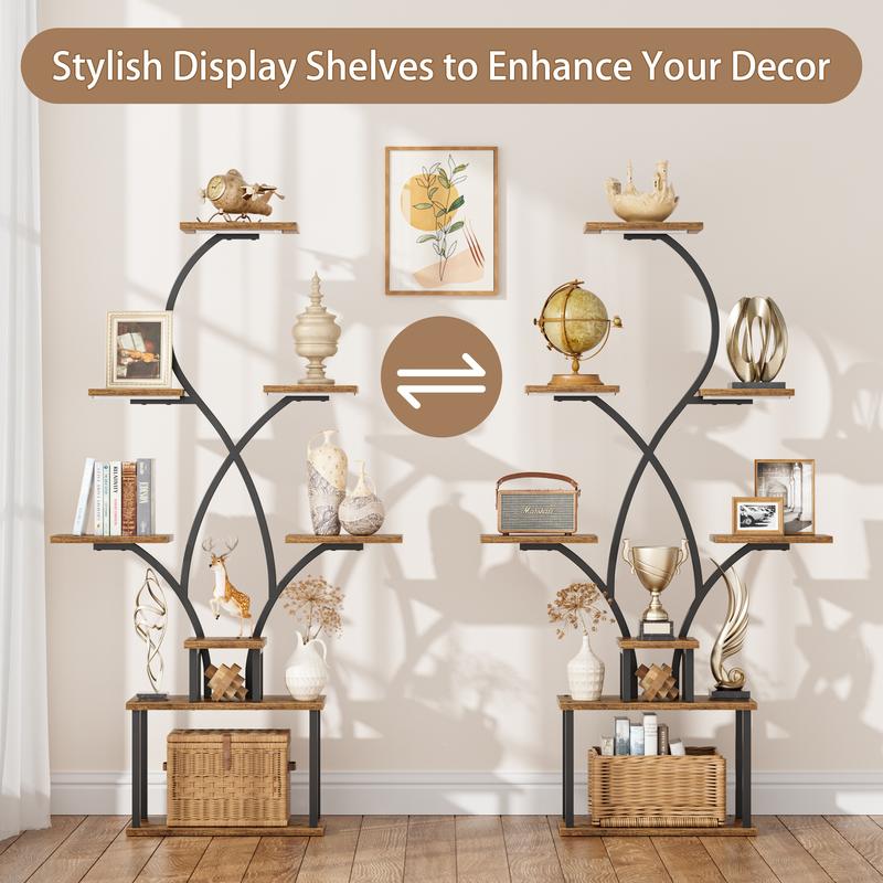 ·【Elegant and Spacious Design】Inspired by modern aesthetics, this multi-layered shelf offers ample space to display plants, artwork, books, or decorative items. Its vertical design maximizes storage while maintaining a sleek, stylish look that complements any living space.