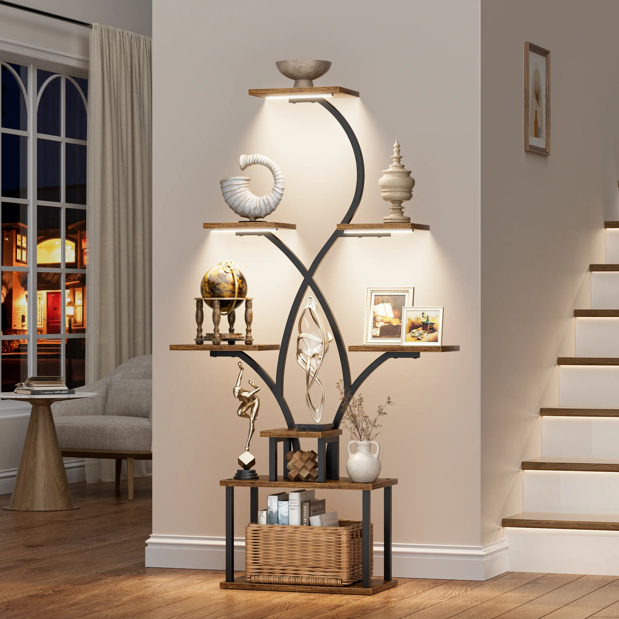 ·【Illuminate Your Space with Style】Our LED display shelf features built-in ambient lighting, creating the perfect glow to highlight your favorite decor. With adjustable brightness settings, this illuminated storage rack enhances the beauty of your art pieces, plants, or collectibles while adding warmth to any room.