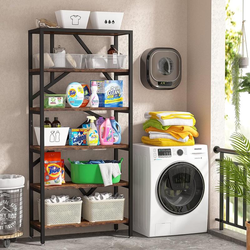 This tall 6-tier bookshelf offers ample storage space while maintaining a sturdy and modern industrial design. Easy assembly and a 1-year warranty make this a reliable choice for organizing and enhancing any room.