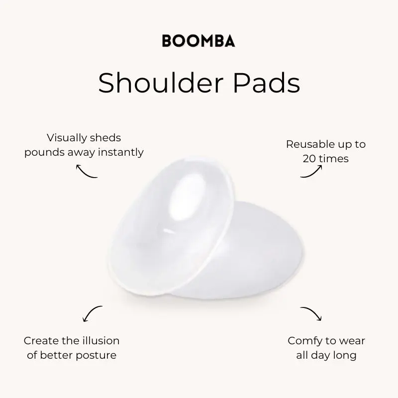 BOOMBA's Magic Silicone Shoulder Pads instantly create the illusion of better posture, reducing the appearance of sloping shoulders. Magically peel away visual pounds by lifting focus away from a fuller bust-line, protruding tummy, wide hips or heavy upper arms.